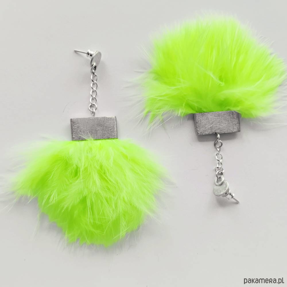 PIÓRKO - stylowy dodatek. Połączenie lekkości piórka i trwałości metalu. Metal niezwykle kontrastuje z naturalnym barwionym puchem. Kolczyki na sztyftach wykonane są z alpaki, srebro ( pr.925), naturalnie barwione pióra. Alpaka - zmatowiona. Długość z ok.9 cm. Szerokość - 5,5 cm.