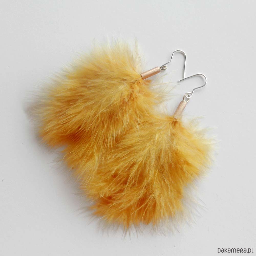 PIÓRKO kolczyki - stylowy dodatek. Połączenie lekkości piórka i trwałości metalu. Metal niezwykle kontrastuje z naturalnym barwionym puchem. Kolczyki wykonane są ręcznie z : miedź, naturalne barwione pióra. Miedź - zmatowiona. Bigle otwarte - srebro pr. 925. Długość z biglami - 9 cm.