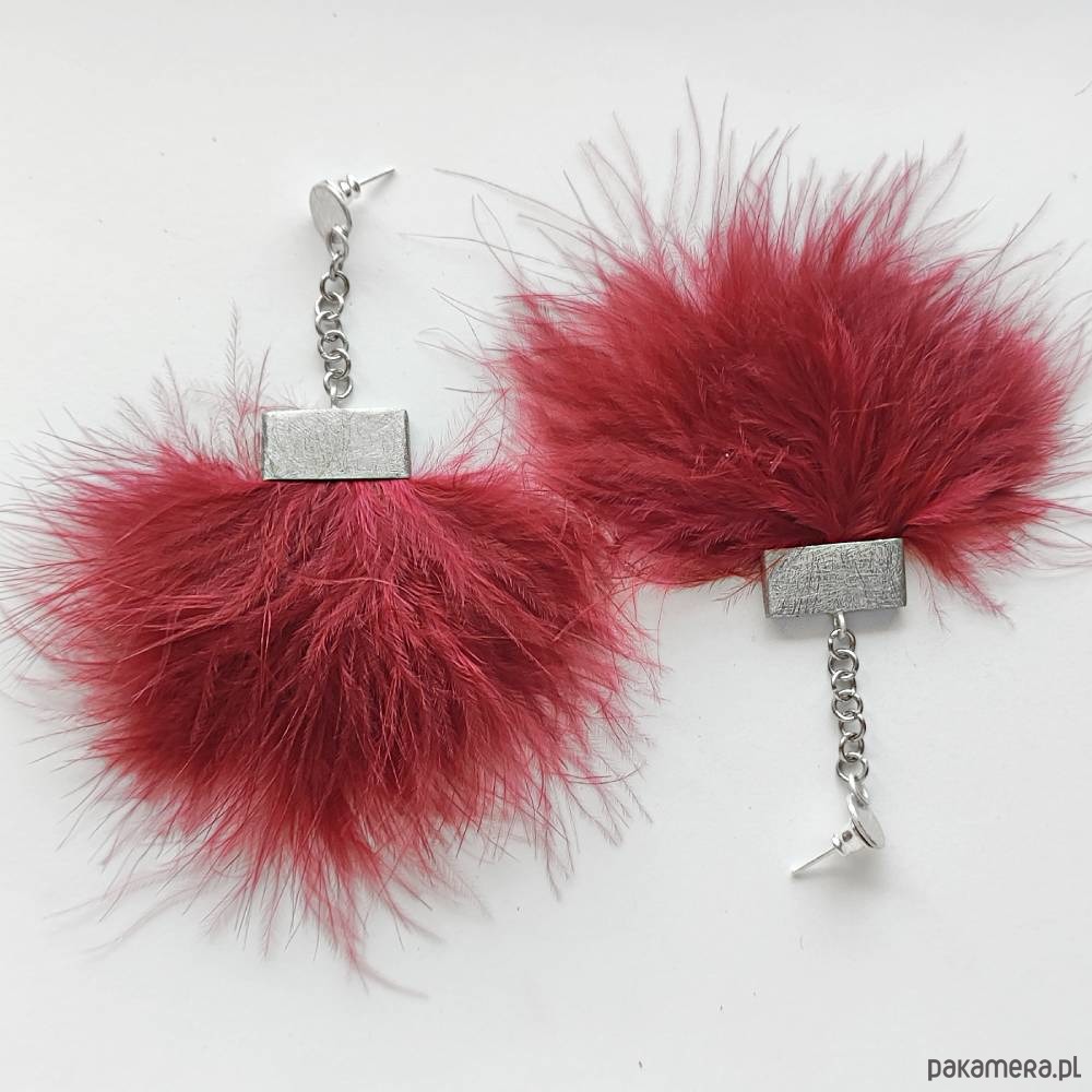 PIÓRKO - stylowy dodatek. Połączenie lekkości piórka i trwałości metalu. Metal niezwykle kontrastuje z naturalnym barwionym puchem. Kolczyki na sztyftach wykonane są z alpaki, srebro ( pr.925), naturalnie barwione pióra. Alpaka - zmatowiona. Długość z ok.9 cm. Szerokość - 5,5 cm.