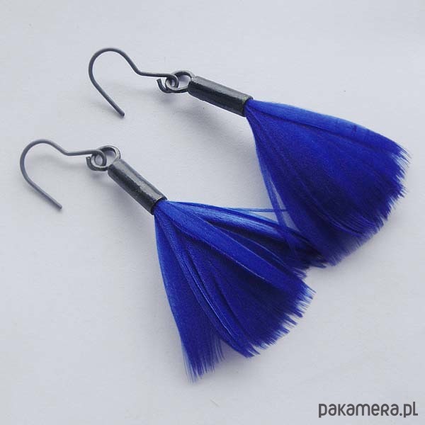 PIÓRKO - stylowy dodatek. Połączenie lekkości piórka i trwałości metalu. Metal niezwykle kontrastuje z naturalnym barwionym puchem. Kolczyki wykonane są z mosiądzu, naturalnie barwione pióra. Mosiądz - oksydowan. Bigle otwarte - srebro pr.925,oksydowane. Długość z biglami - ok. 5,5 cm. Szerokość - 2 cm. Waga - ok. 2,3 g.