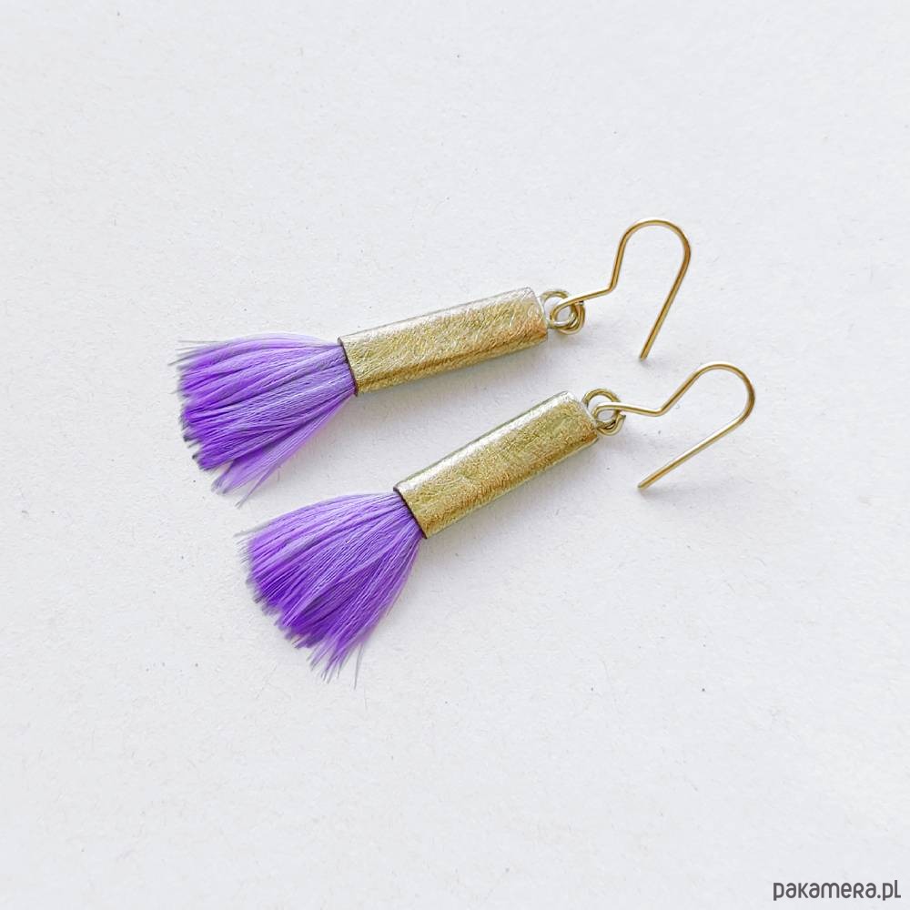 PIÓRKO - stylowy dodatek. Delikatne oraz lekkie kolczyki dodadzą charakteru każdej stylizacji. Metal niezwykle kontrastuje z naturalnym barwionym puchem. Kolczyki wykonane są z miedzi, naturalnie barwione pióra. Miedź - zmatowiony. Bigle otwarte - srebro pr.925. Długość z biglami - 5,5 cm. Szerokość - 1,5 cm. Waga - ok. 2,5 g.