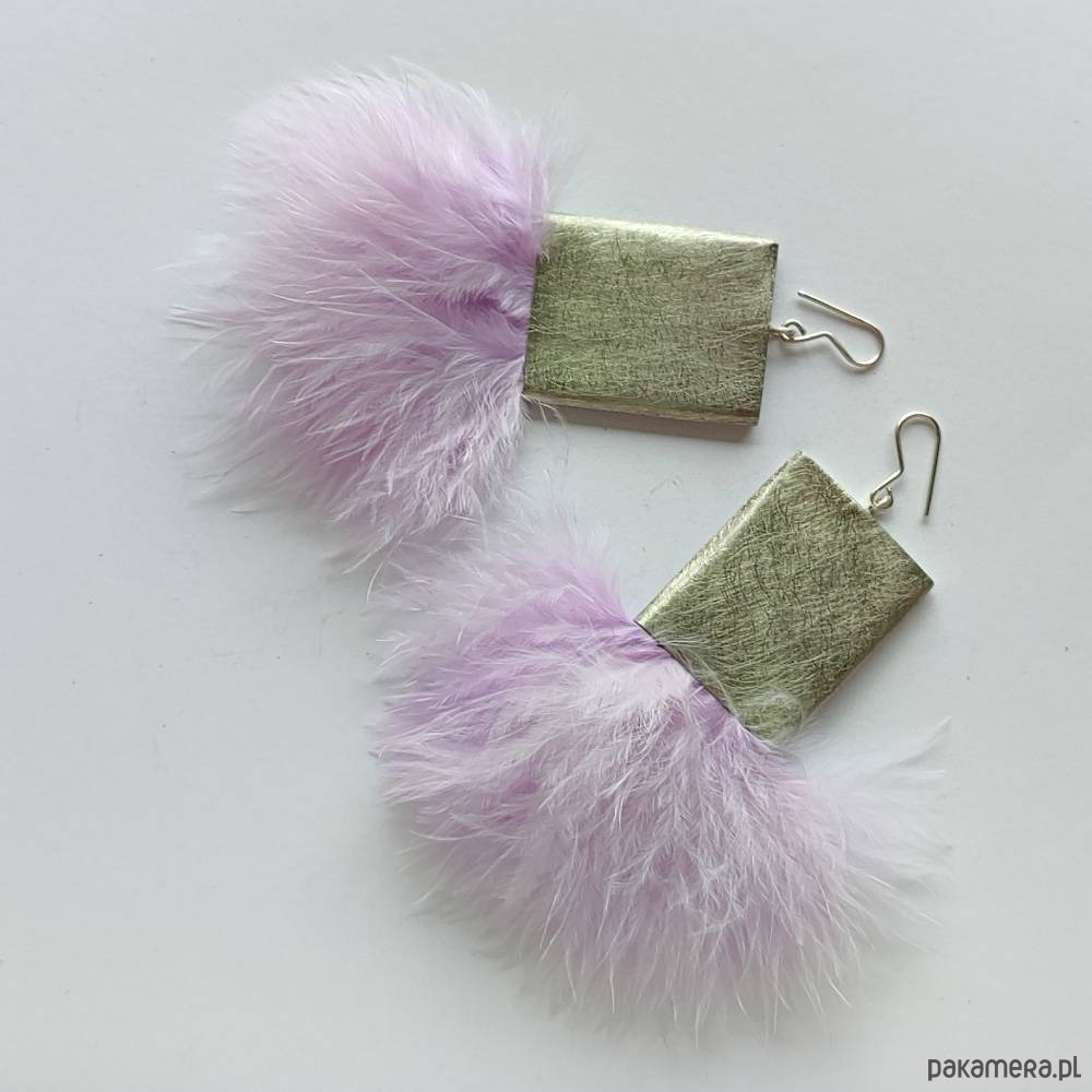 PIÓRKO - stylowy dodatek. Połączenie lekkości piórka i trwałości metalu. Metal niezwykle kontrastuje z naturalnym barwionym puchem. Kolczyki wykonane są z alpaka, naturalnie barwione pióra. Alpaka - zmatowiona. Bigle otwarte - srebro pr.925, . Długość z biglami 11 cm. Szerokość - 7cm.