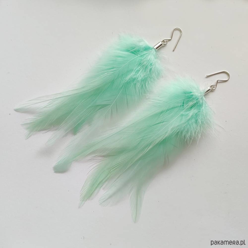 PIÓRKO kolczyki - stylowy dodatek. Połączenie lekkości piórka i trwałości metalu. Metal niezwykle kontrastuje z naturalnym barwionym puchem. Kolczyki wykonane są z : srebro, naturalne barwione pióra. Bigle otwarte - srebro pr.925. Długość z biglami -14 cm. Kolczyki są lekkie . Polecam!.