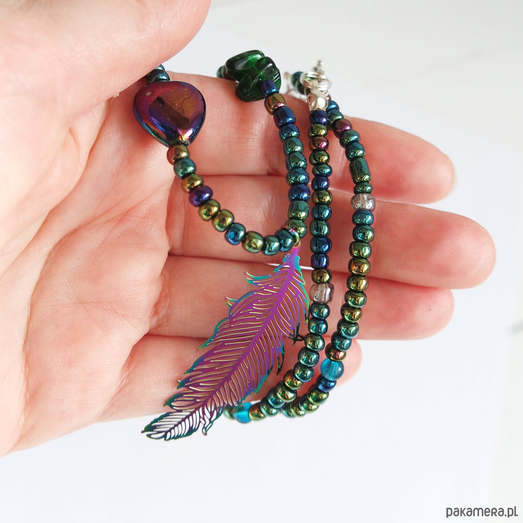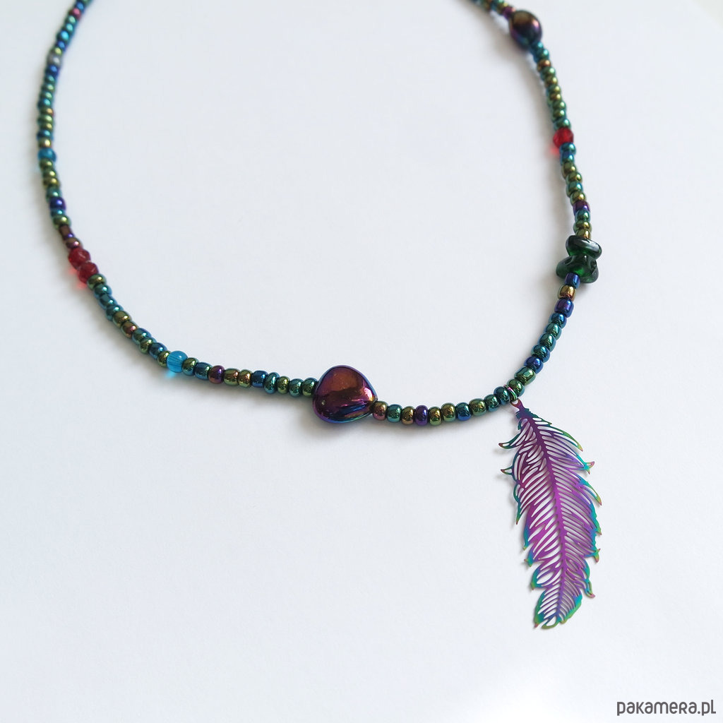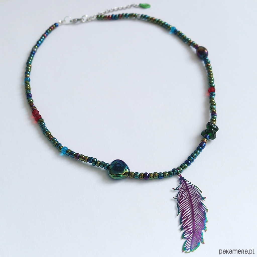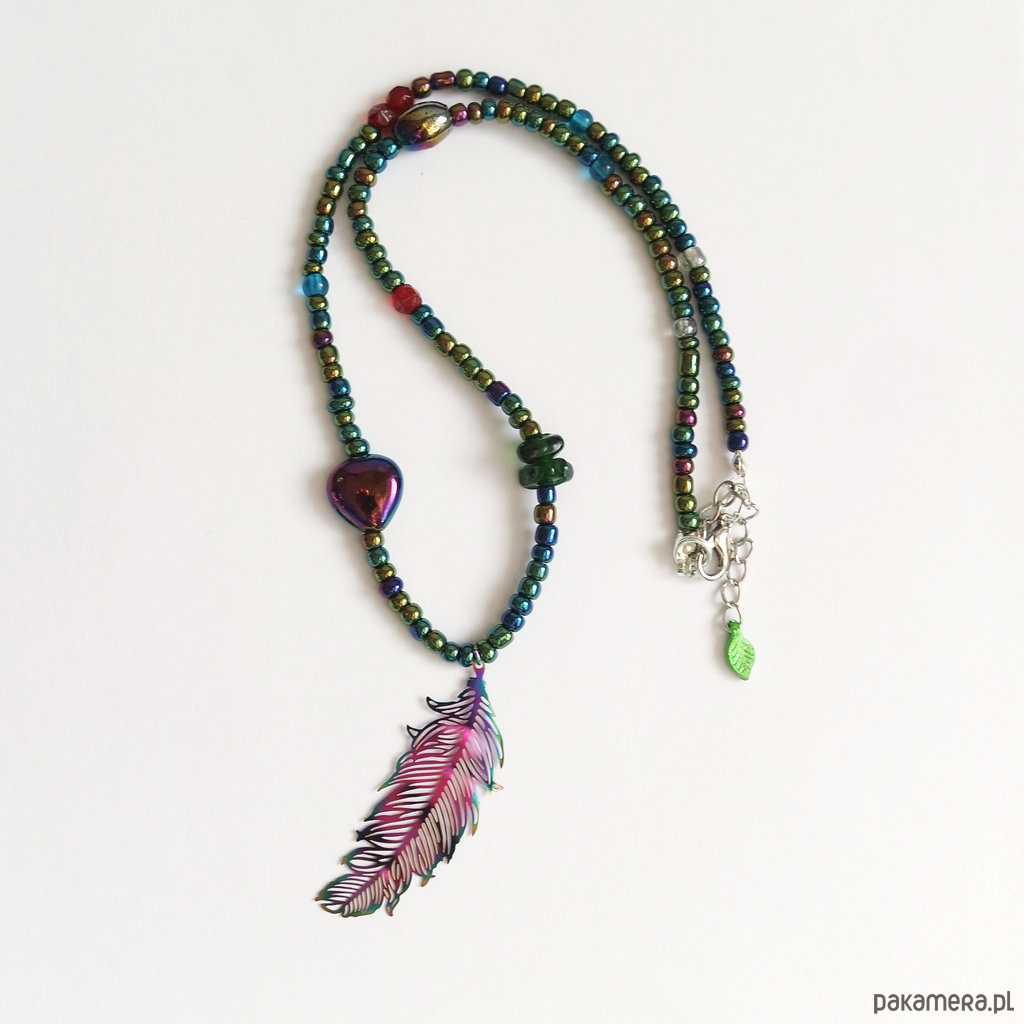 Oryginalny naszyjnik z zawieszką w kształcie piórka.