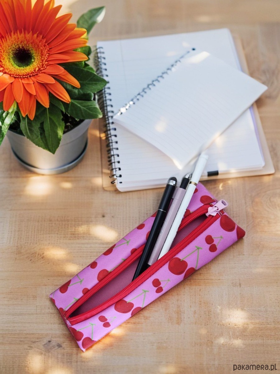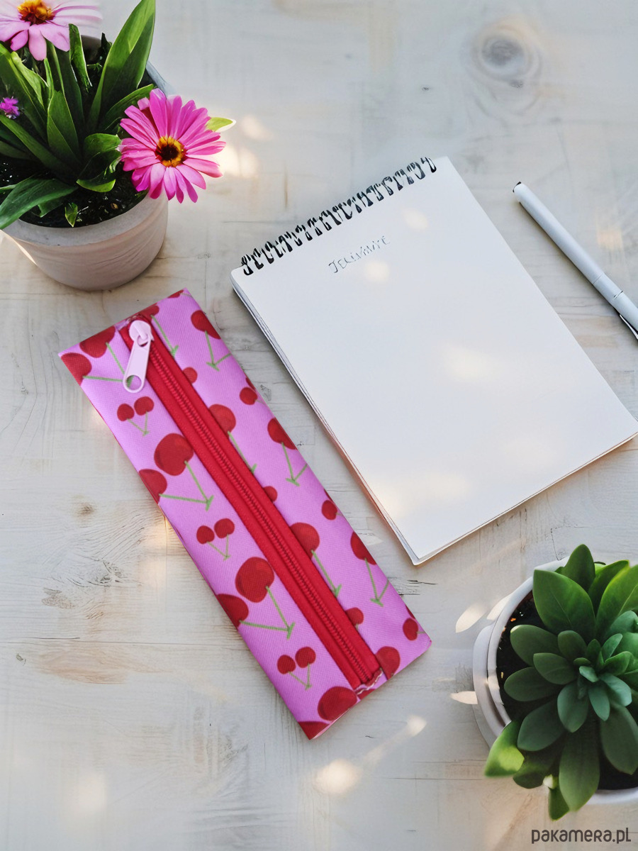 Kiedy róż spotyka czerwień wiśni, robi się… smakowicie! Ten piórnik to totalna słodycz z charakterem. Różowe tło, czerwony zamek i różowy suwak – wszystko gra idealnie. To organizer, który pokochają uczennice, nastolatki i kobiety ceniące unikatowe dodatki. Wodoodporna tkanina chroni Twoje skarby, a kompaktowy rozmiar sprawia, że zmieści się do każdej torby. W sam raz na kredki, tusz, korektor, ulubioną szminkę i… trochę wiśniowego nastroju. Handmade jak się patrzy!