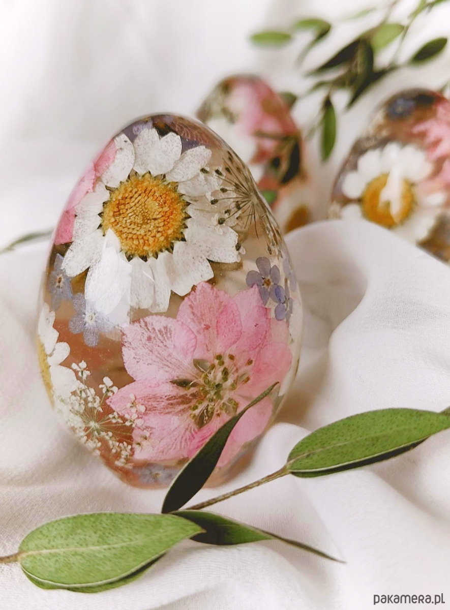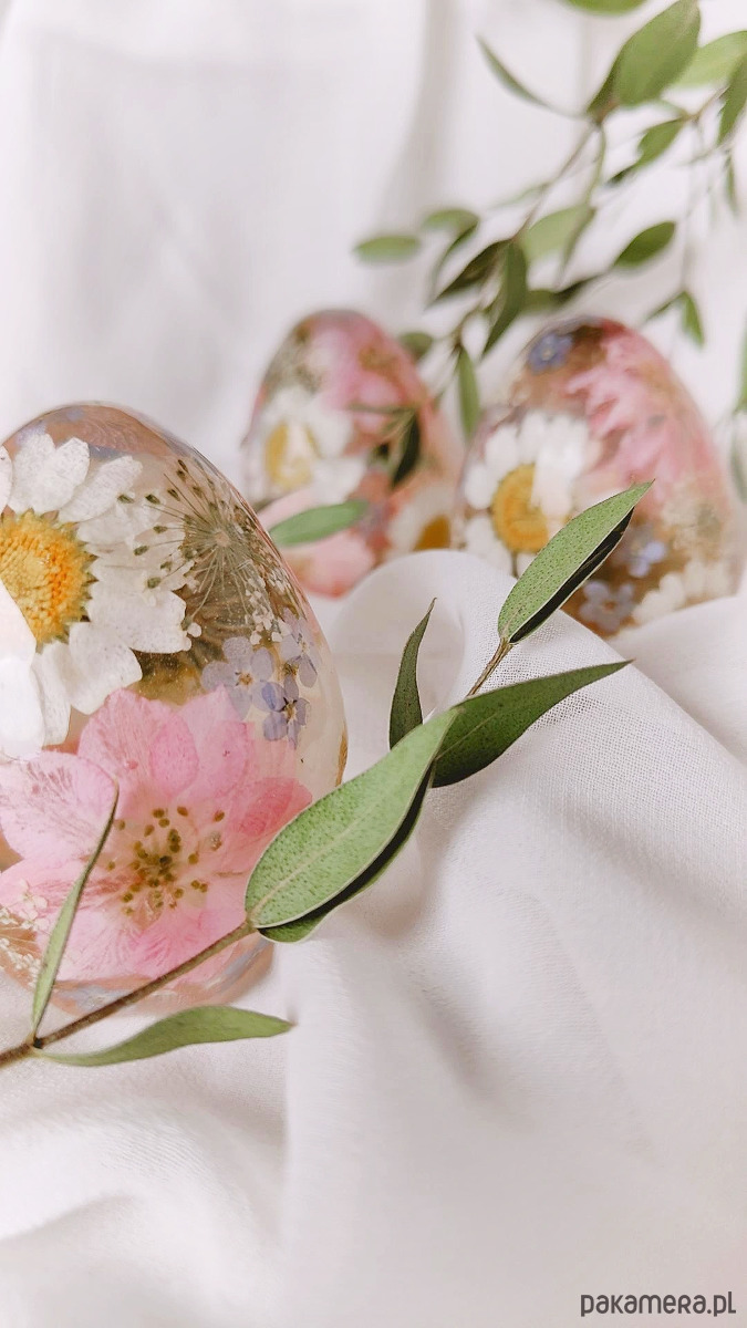 Pisanki / jajka wielkanocne - żywica epoksydowa i suszone kwiaty PINK CLOUD