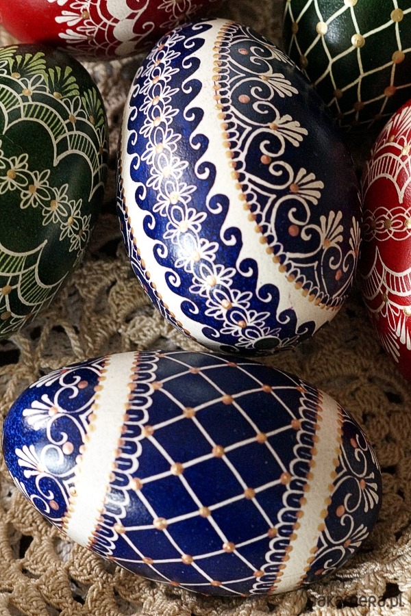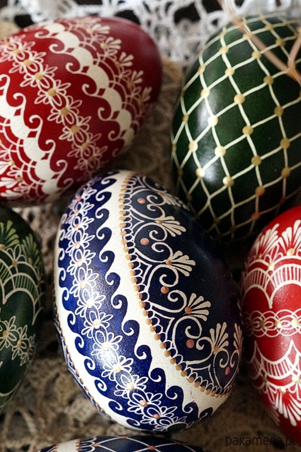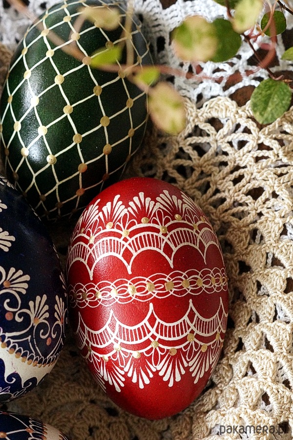 Tradycyjna pisanka batikowa malowana ręcznie na wydmuszce jaja gęsiego.