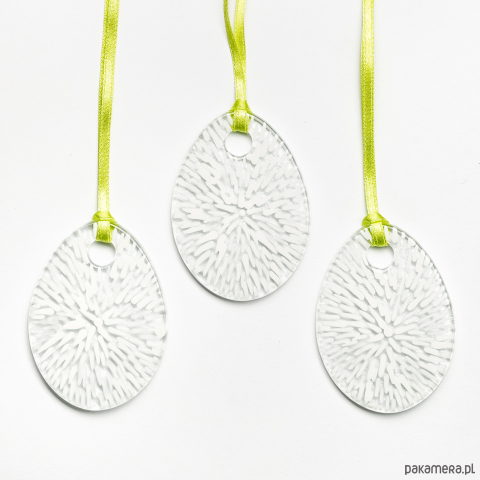 Zestaw trzech wiosenno-wielkanocnych zawieszek wykonanych ze szkła metodą fusingu.