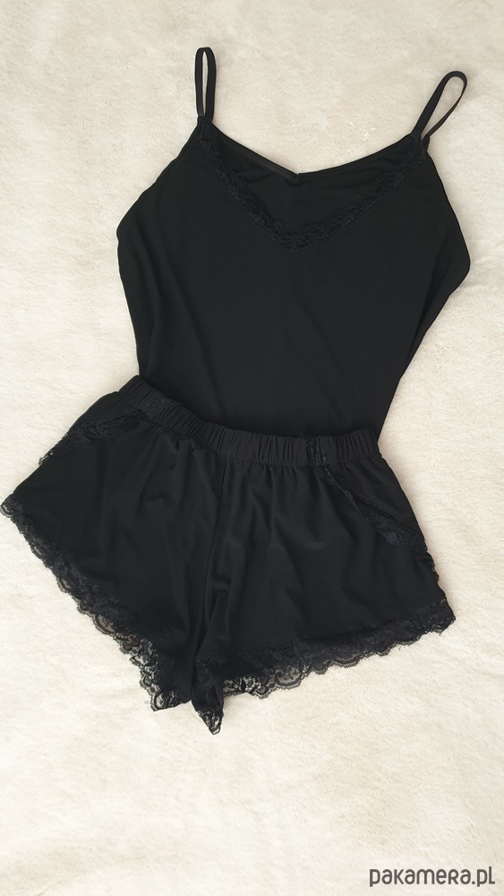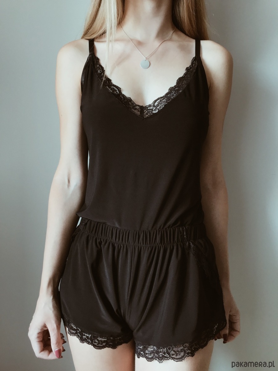 Piżamka LAURELLE z delikatną koronką, wykonana z przyjemnej i elastycznej dzianiny poliestrowej.