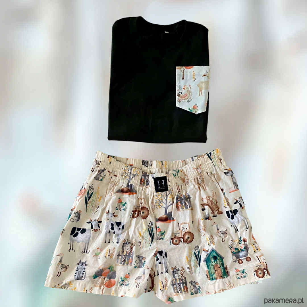 Bawełniane szorty oraz koszulka zapewnia Ci nieskrępowany sen, świetna wentylację oraz kolorowe sny.