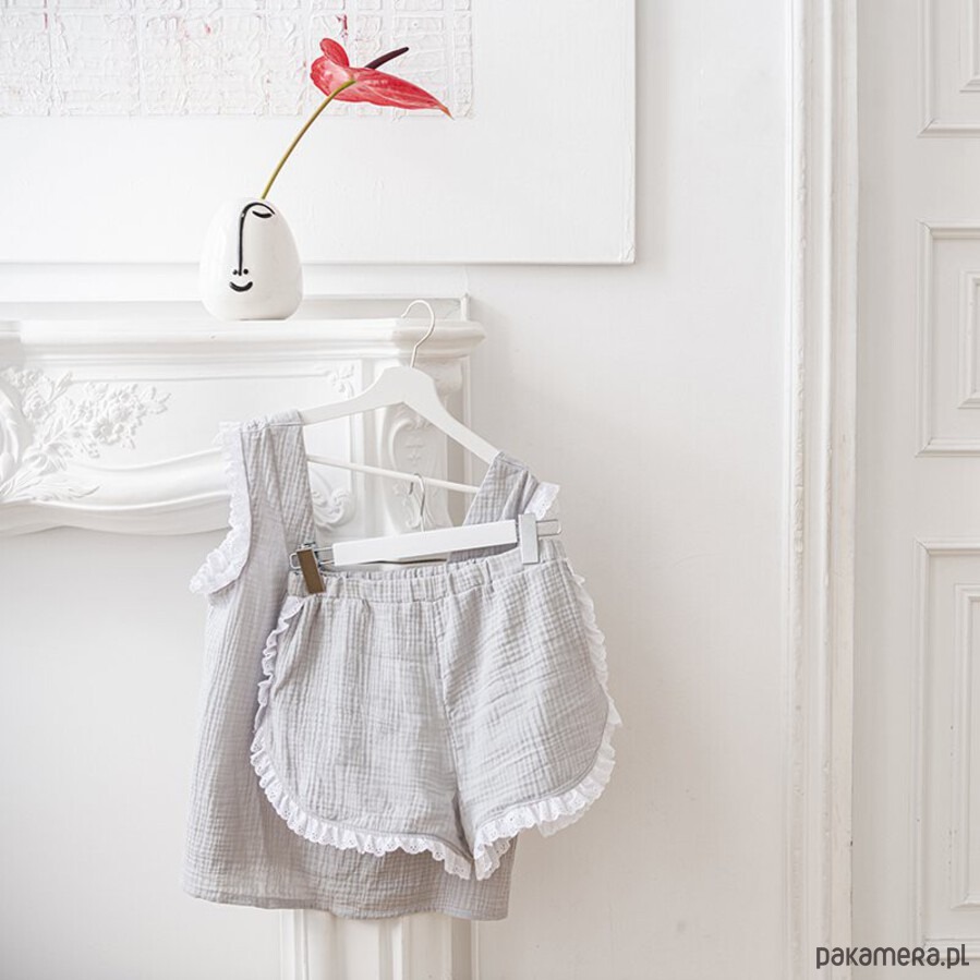 Szara piżamka z przewiewnego muślinu to połączenie naturalnego komfortu i subtelnej elegancji. Miękka, oddychająca tkanina otula ciało lekką warstwą przyjemności, pozwalając skórze oddychać i zapewniając swobodę ruchów przez całą noc.