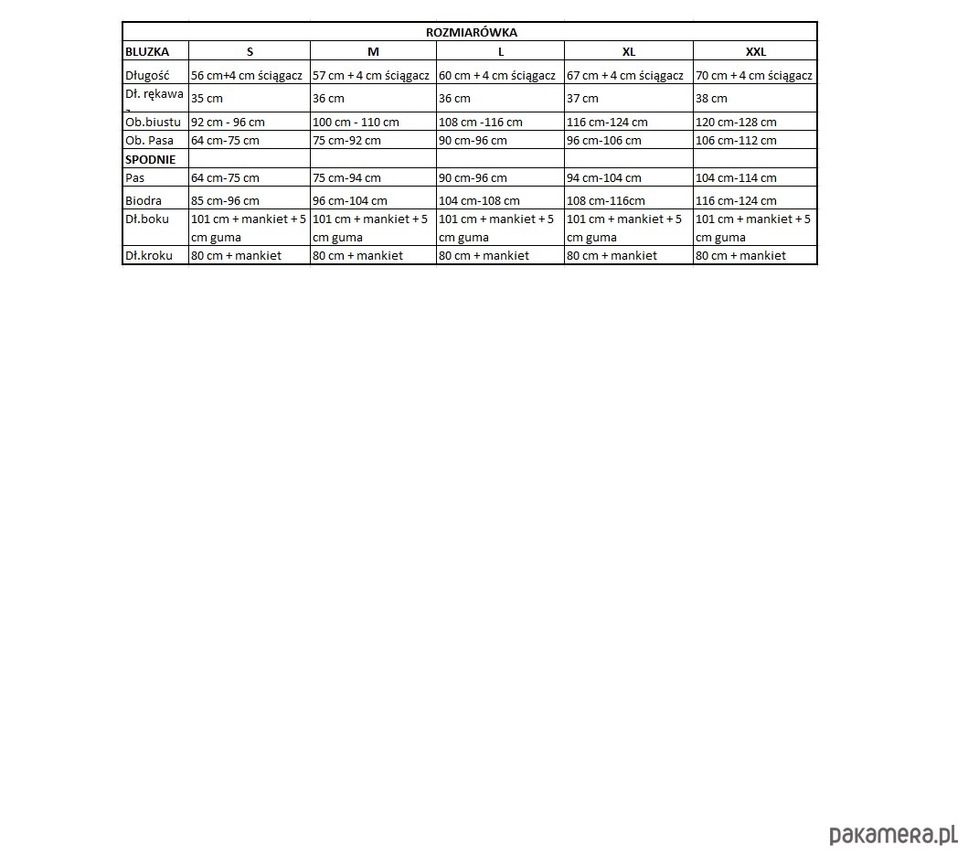 Przecięcia na biust umiejscowione są u spodu z obu stron piżamki i mają długość 31 cm -36 cm (w zależności od rozmiaru), co umożliwia swobodne karmienie dziecka. Dekolt uszyty w łódkę pozwala w subtelny sposób odsłonić ramię. Spodnie uszyte zostały na wzór spodni dresowych z delikatnym ściągaczem u dołu, dzięki któremu mają uniwersalną długość. Kieszonka w bluzce po prawej stronie, w spodniach z przodu po lewej z tyłu po prawej. Produkt wykonany z polskich materiałów i w 100% z bawełny. Konieczne jest wpisanie w formularzu zamówień wybranego rozmiaru. Kieszonki wycinane są ręcznie z większego kawałka materiału, dlatego mogą różnić się występującymi motywami