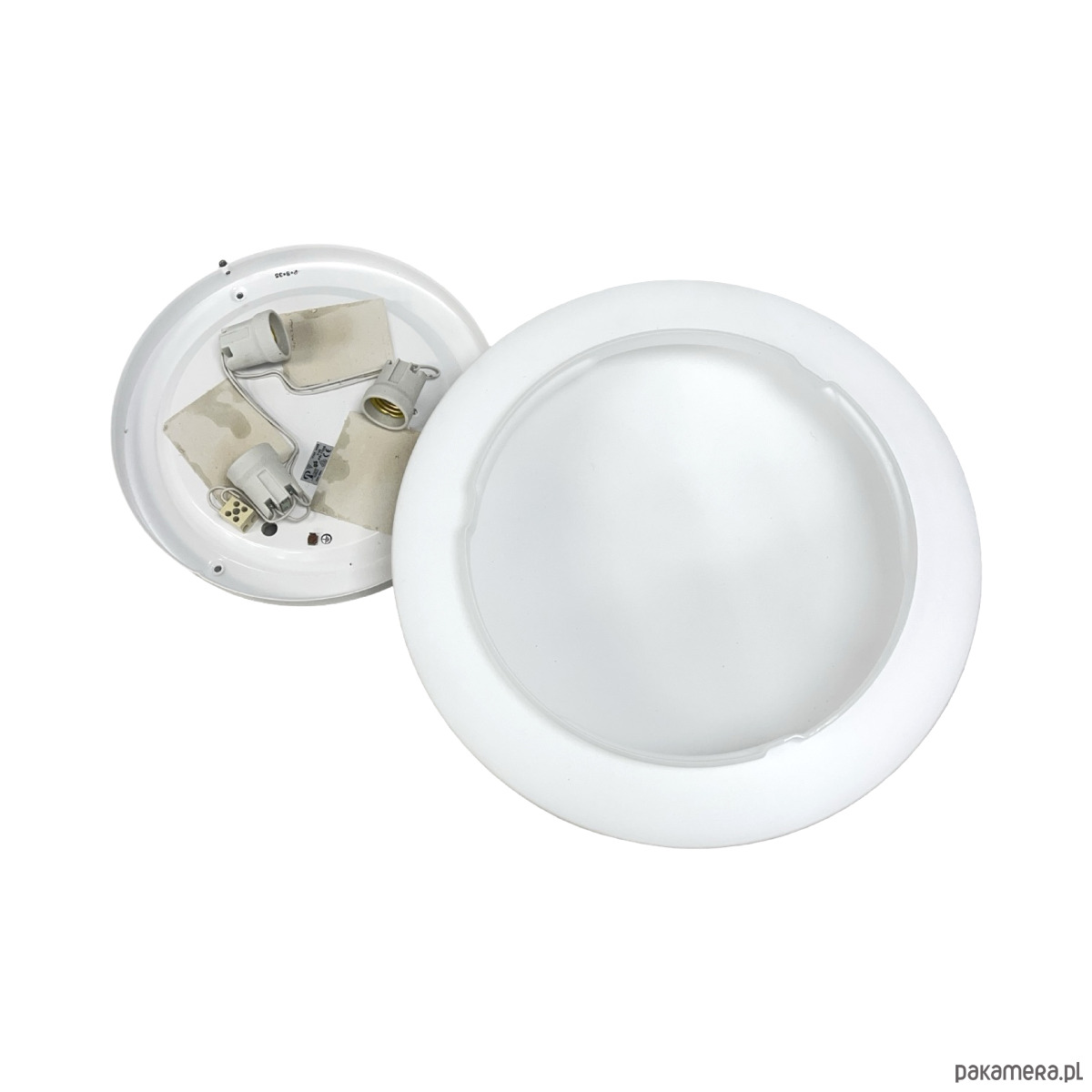 Oryginalny plafon sufitowy renomowanej niemieckiej manufaktury Peill & Putzler, datowany na lata 70. XX wieku. Wykonany z grubego, wysokiej jakości szkła opalowego o mlecznej, równomiernie rozpraszającej światło powierzchni.