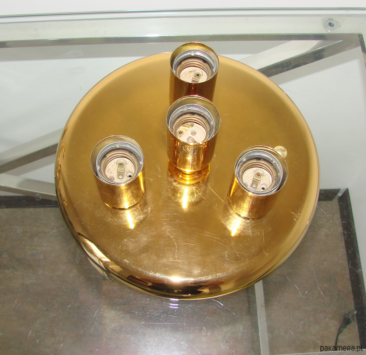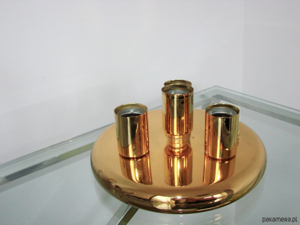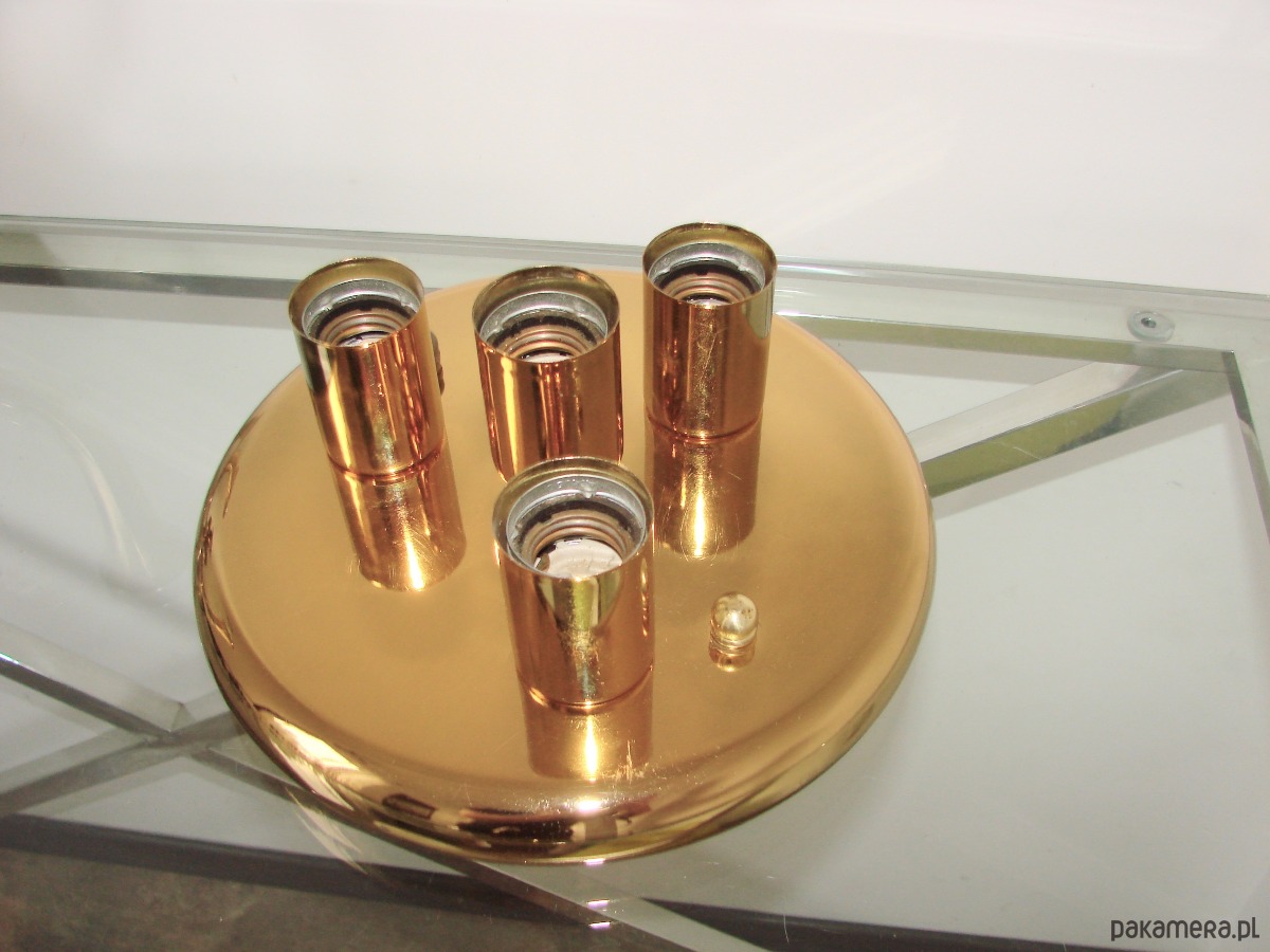 Plafon jest w bardzo dobrym stanie zachowania. Solidna metalowa konstrukcja zapewnia trwałość i stabilność, a cztery oprawki na żarówki E27 pozwalają uzyskać przyjemne, równomierne oświetlenie pomieszczenia.