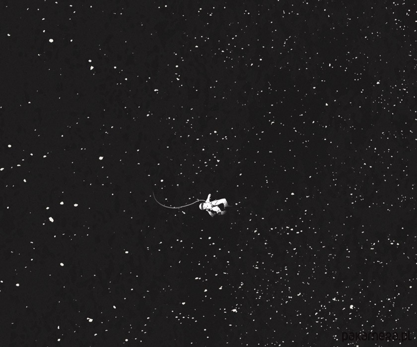 Plakat z autorską grafiką inspirowaną filmem 2001: Odyseja Kosmiczna w reżyserii Stanleya Kubricka.