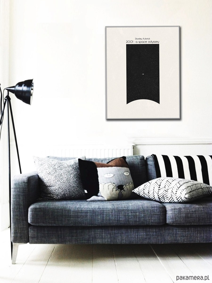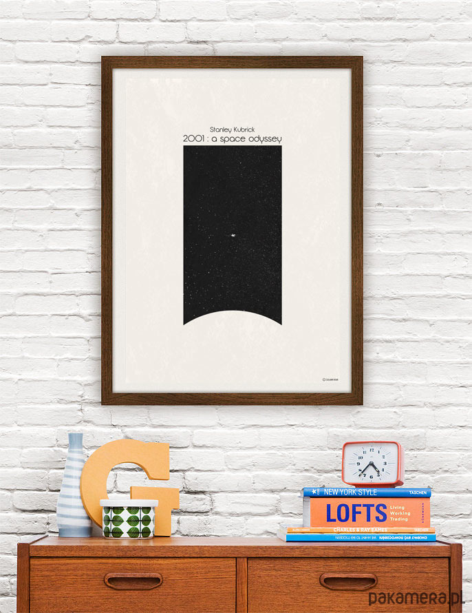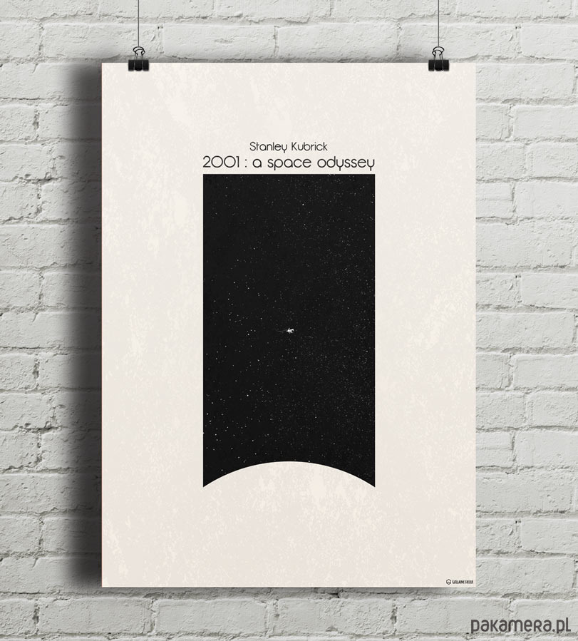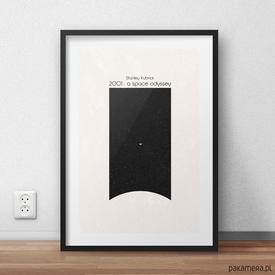 Plakat z autorską grafiką inspirowaną filmem 2001: Odyseja Kosmiczna w reżyserii Stanleya Kubricka.