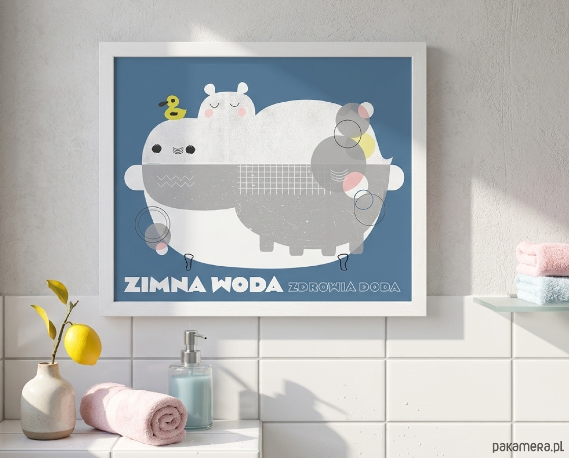 Plakat 30x40 łazienka hippo w wannie zimna woda zdrowia doda