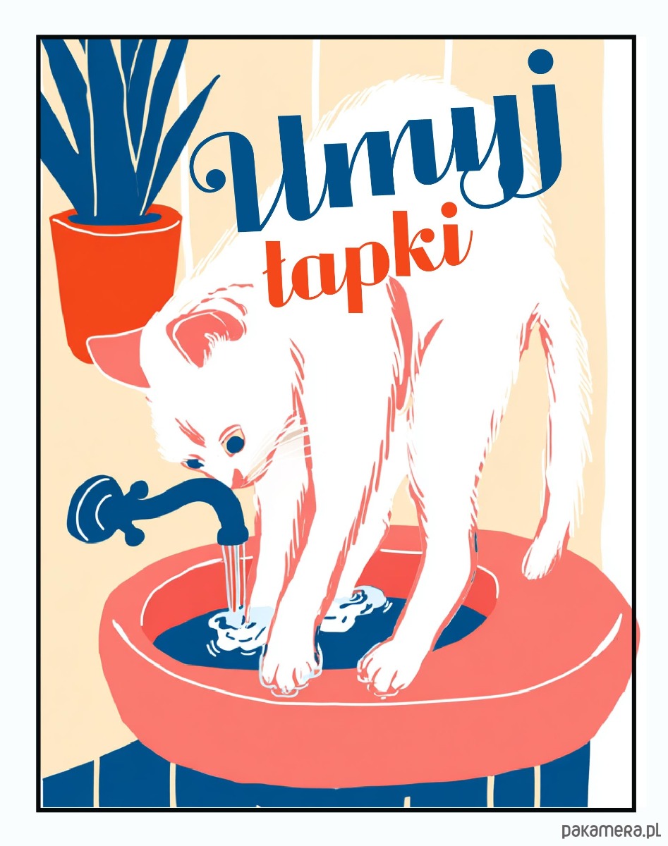 Plakat 30x40 łazienka myj ręce, umyj łapki