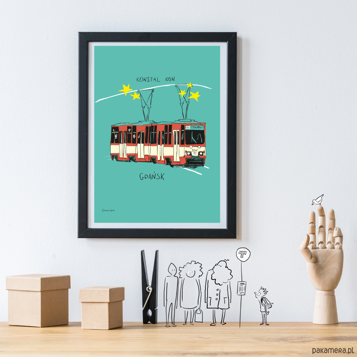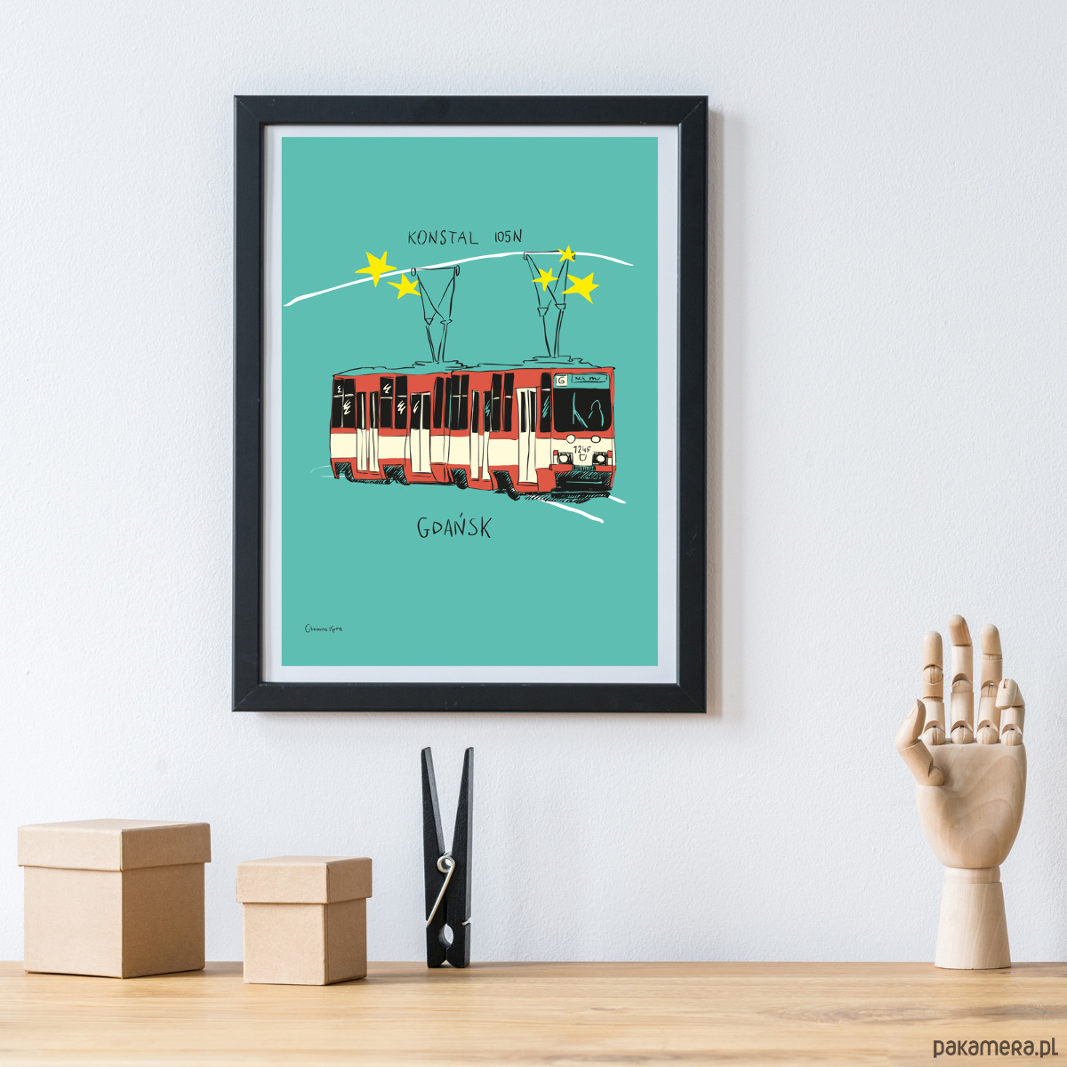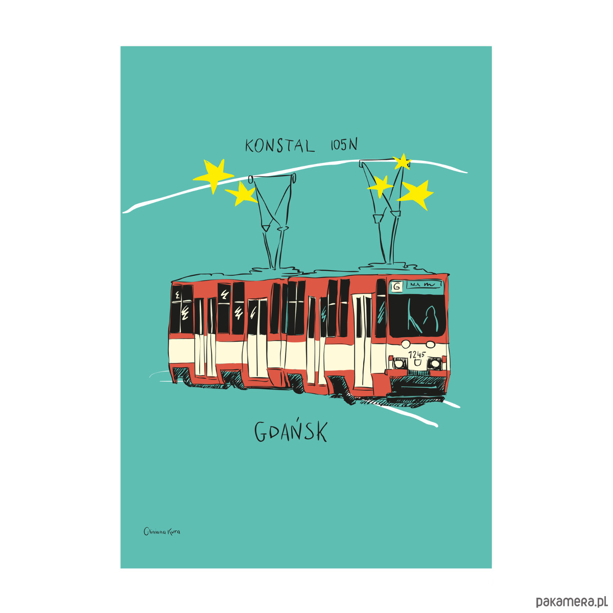 Plakat A4 Gdańsk Tramwaj Konstal 105N