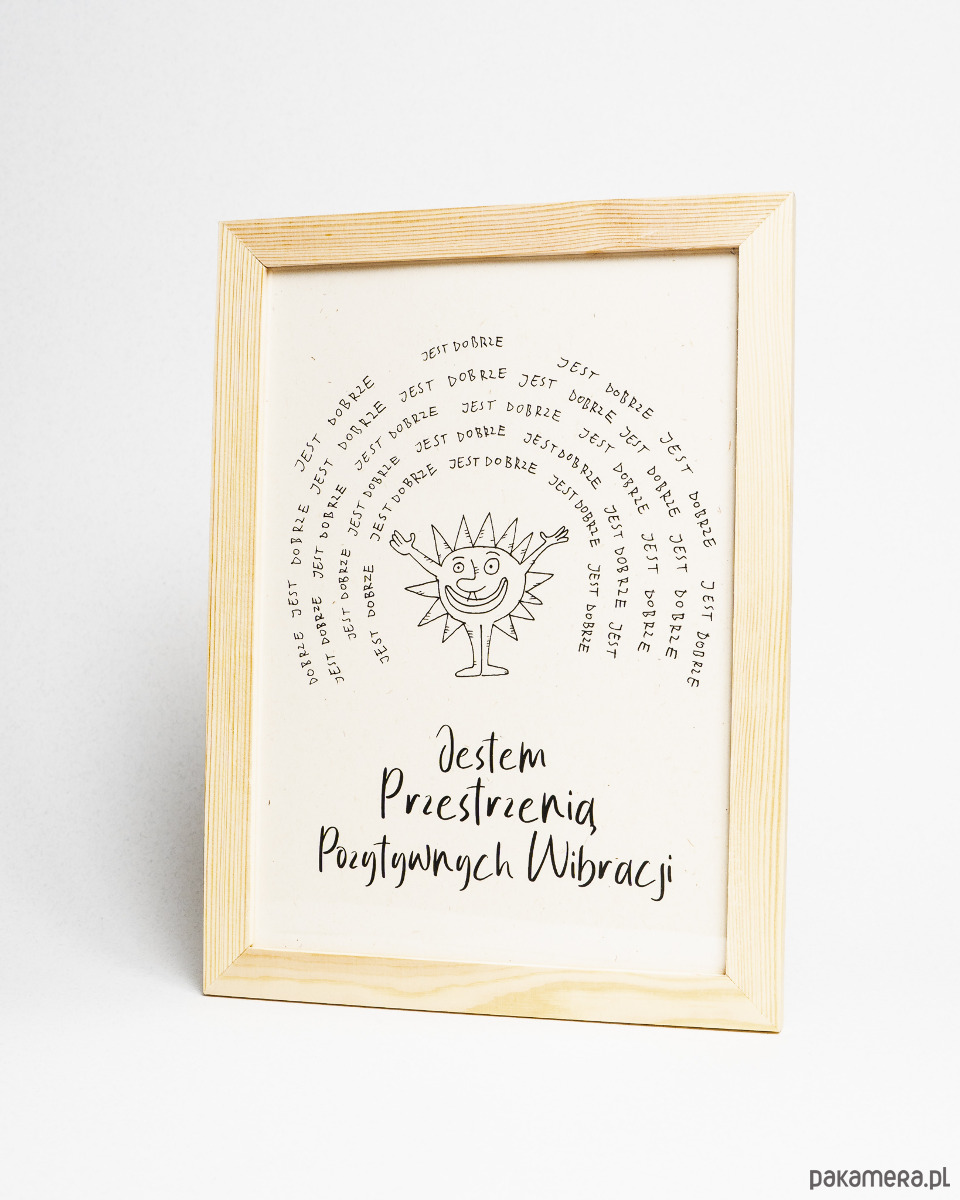 Plakat A4 z afirmacją w ramce ,,Jestem przestrzenią pozytywnych wibracji''