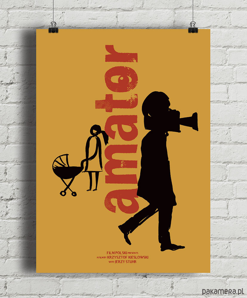 Plakat inspirowany filmem Amator w reżyserii Krzysztofa Kieślowskiego. Kino moralnego niepokoju w najlepszym wydaniu i niezapomniany Jerzy Stuhr w roli Filipa. Dekoracja obowiązkowa dla każdego kinomana.