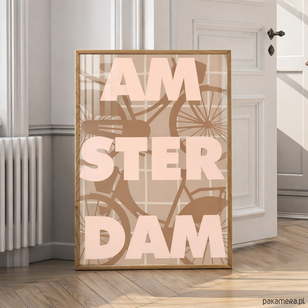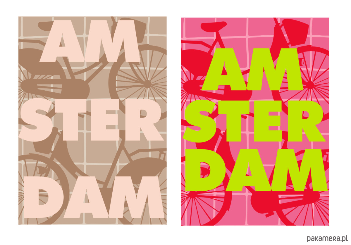 Nie oglądasz Amsterdamu, czujesz jego rytm. Amsterdam zapisany w literach i spokojnych rytmach miasta. Rower gdzieś w tle, miękkie światło i powtarzalność, która zamiast nudzić, porządkuje przestrzeń. To plakat, który nie opowiada historii wprost, tylko zostawia niedopowiedzenie. Typografia jest mocna, ale nie dominuje. Wchodzi w dialog z tłem, z jego geometrią i tempem. Całość działa jak kadr zatrzymany między ruchem a ciszą.