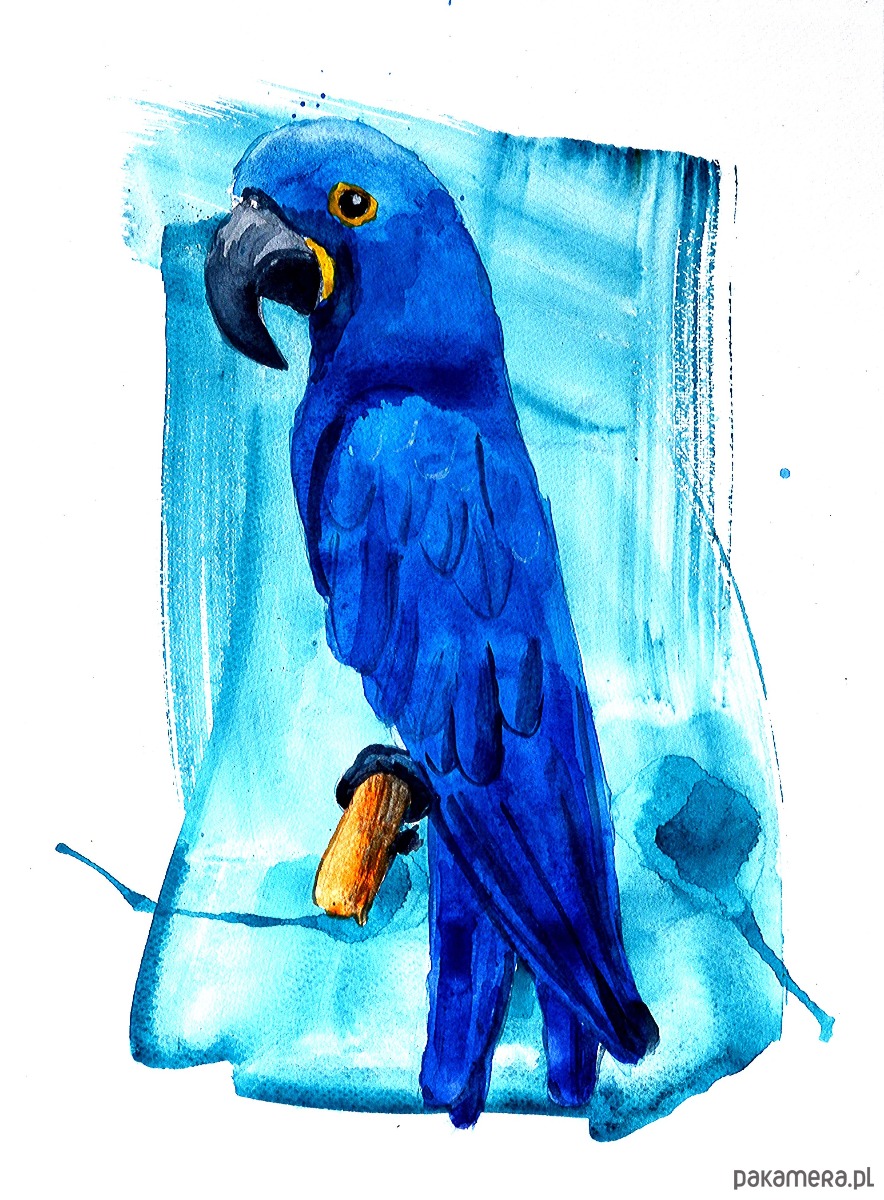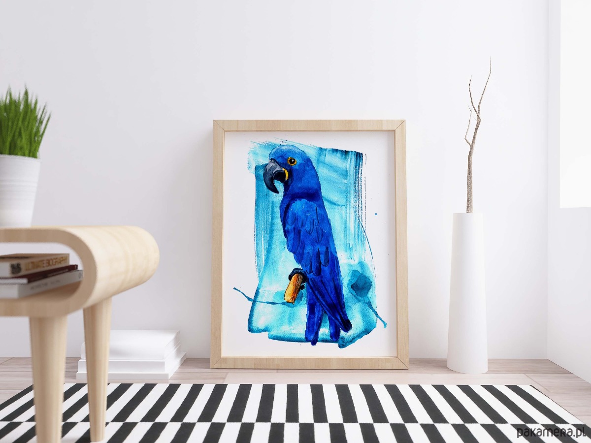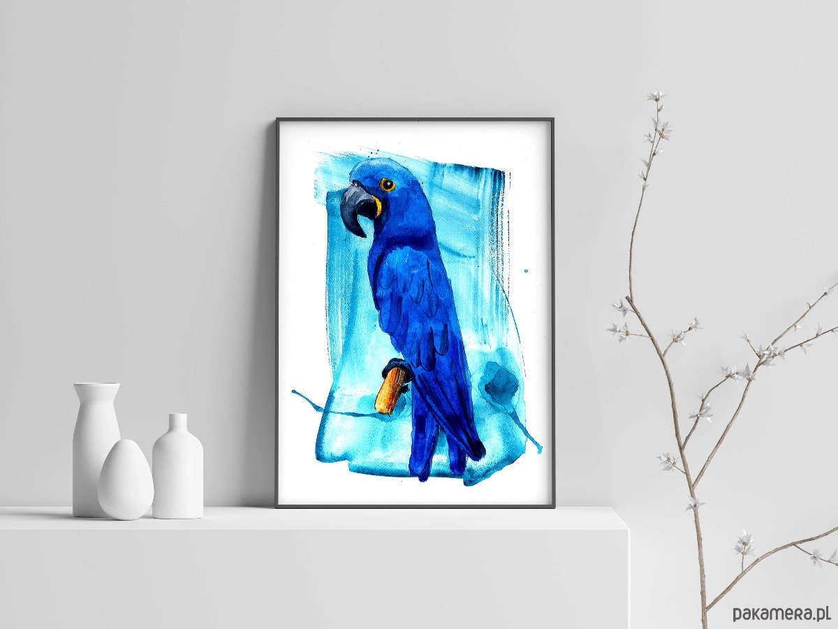 Plakat "Ara hiacyntowa" wydrukowany na podstawie akwareli, dostępny w 4 rozmiarach. Ara hiacyntowa jest zagrożona wyginięciem, żyje w wilgotnych lasach Ameryki Południowej. Namalowana jest w stylu japońskim. Z jednej strony gestem i wrażeniem, z drugiej ze szczegółowym "opisem" charakteru ptaka. W moim malarstwie najważniejsze są inspiracje bogactwem świata przyrody. Plakat jest sygnowany z tyłu monogramem artysty Marta Żylska 2024. Obraz jest częścią otwartego cyklu malarskiego, rozpoczętego w 2018 roku pt: Ptaki świata. malowana w ramach projektu własnego "Warsaw Birds". Plakat drukowany w limitowanej serii 50 szt. Praca pasować będzie do wnętrz nowoczesnych i minimalistycznych ale także ekstrawaganckich. Może szczególnie spodobać się podróżnikom i miłośnikom przyrody. Będzie pasować do sypialni i salonu, a także przedpokoju.