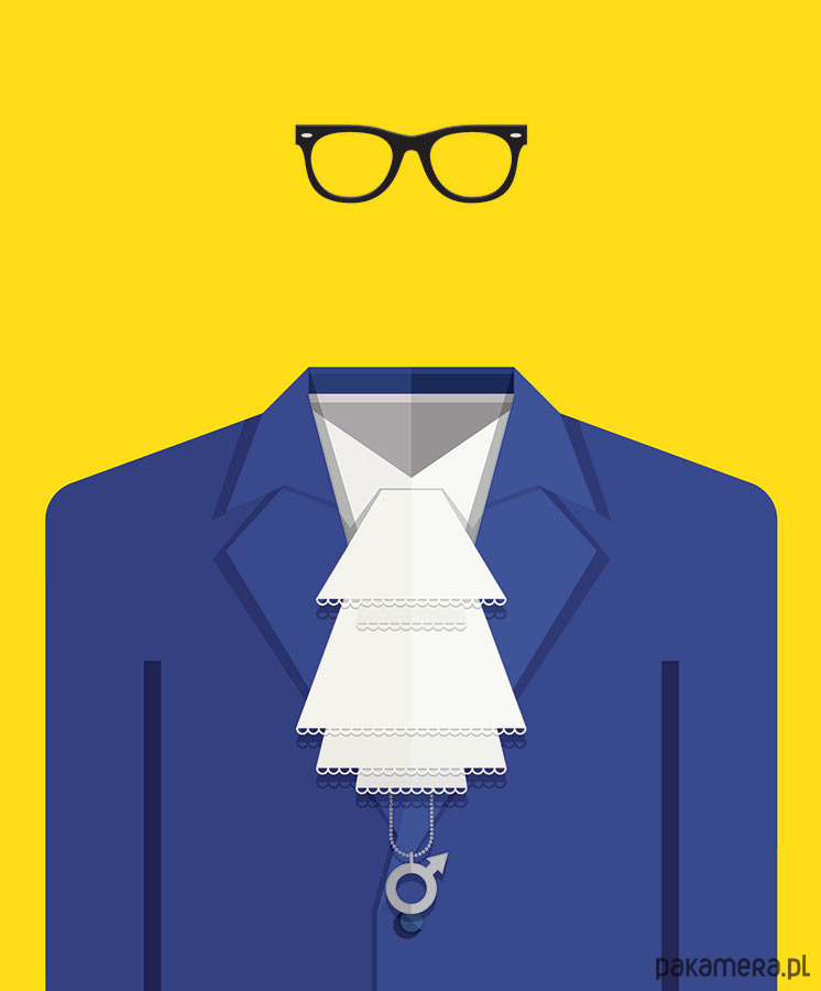 Plakat z autorską grafiką inspirowany filmem "Austin Powers: Agent Specjalnej Troski" (Austin Powers: International Man Of Mystery), reż. Jay Roach. Pochodzi z serii "Cinema Costumes" (Kostiumy kinowe) i przedstawia strój tytułowego bohatera.
