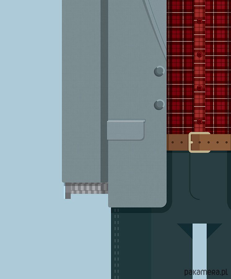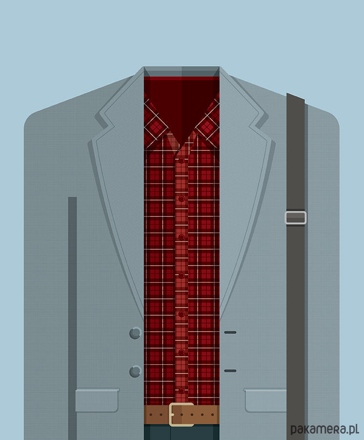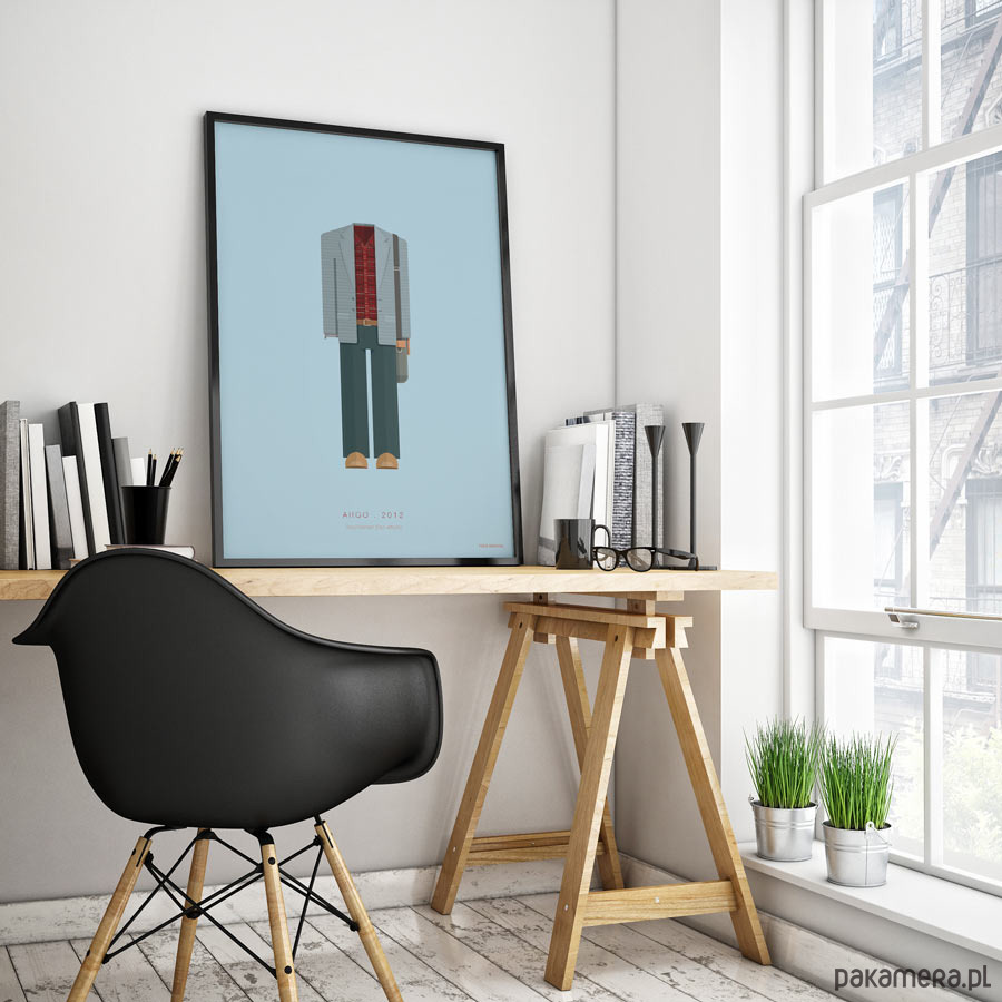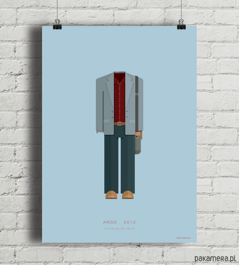 Plakat z autorską grafiką inspirowany filmem Operacja Argo (Argo), reż. Ben Affleck. Pochodzi z serii "Cinema Costumes" (Kostiumy kinowe) i przedstawia strój Tonyego Menedza.