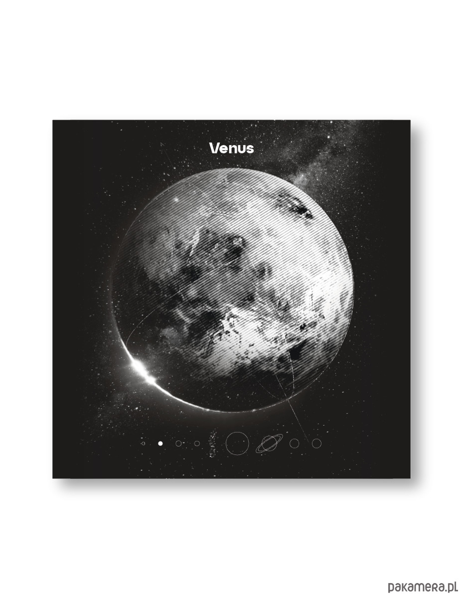 Plakat z kolekcji KOSMOS przedstawiający planetę Wenus od Posterki Studio to subtelna i elegancka dekoracja, która doskonale wpasuje się w każde nowoczesne wnętrze. Wydrukowany w technice lateksowej (pigmentowej) na satynowanym papierze o gramaturze 200 g, plakat wyróżnia się trwałością i głębią. Kompaktowy format 25x25 cm pozwala na łatwe dopasowanie do różnych aranżacji, wprowadzając delikatny, kosmiczny akcent do Twojego salonu, sypialni czy gabinetu. To doskonały wybór dla tych, którzy cenią sobie piękno wszechświata w minimalistycznej formie.