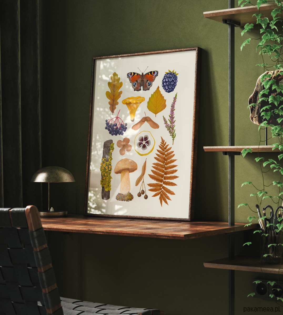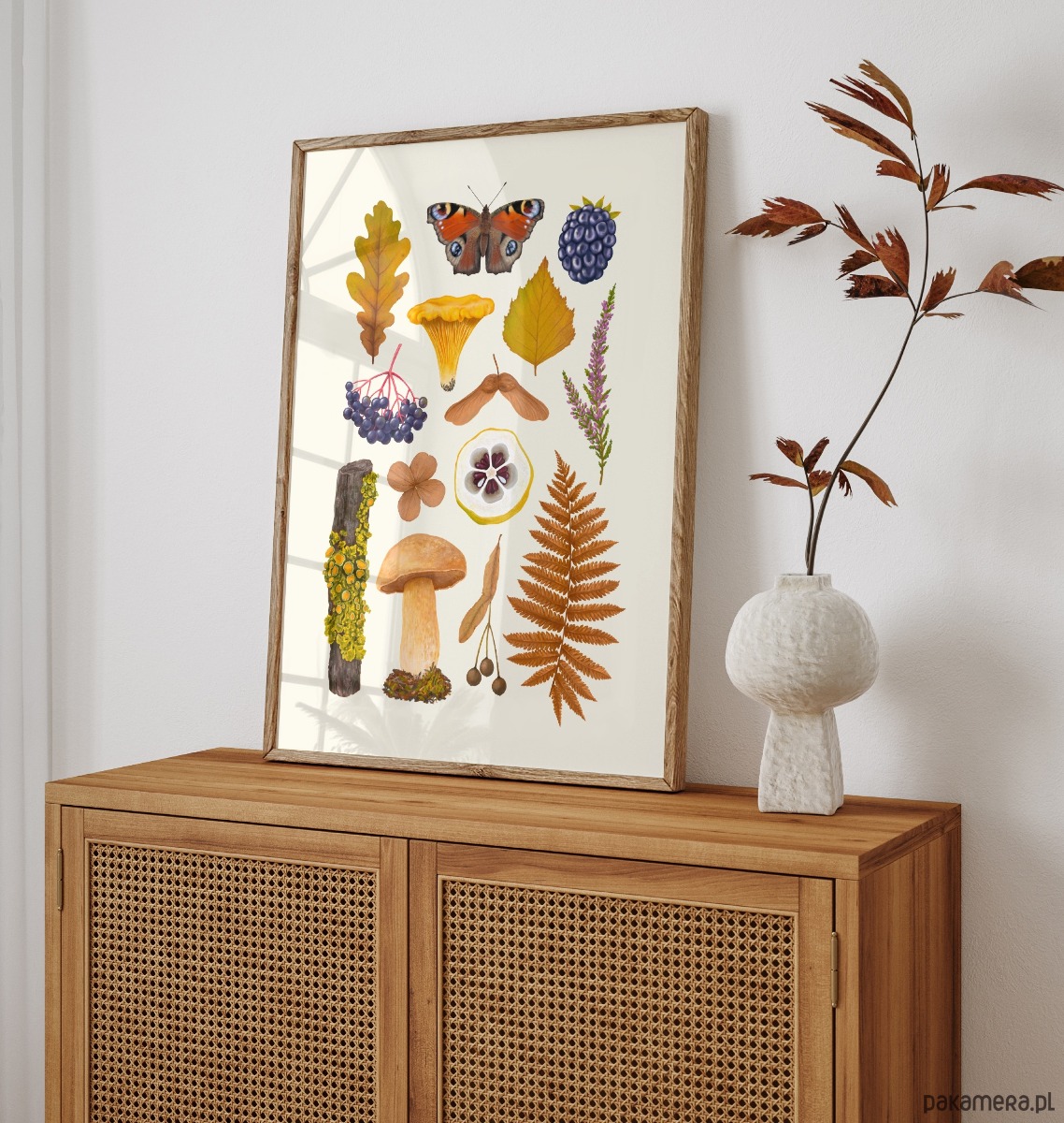 Plakat wprowadza do wnętrza przytulny klimat początków jesieni.