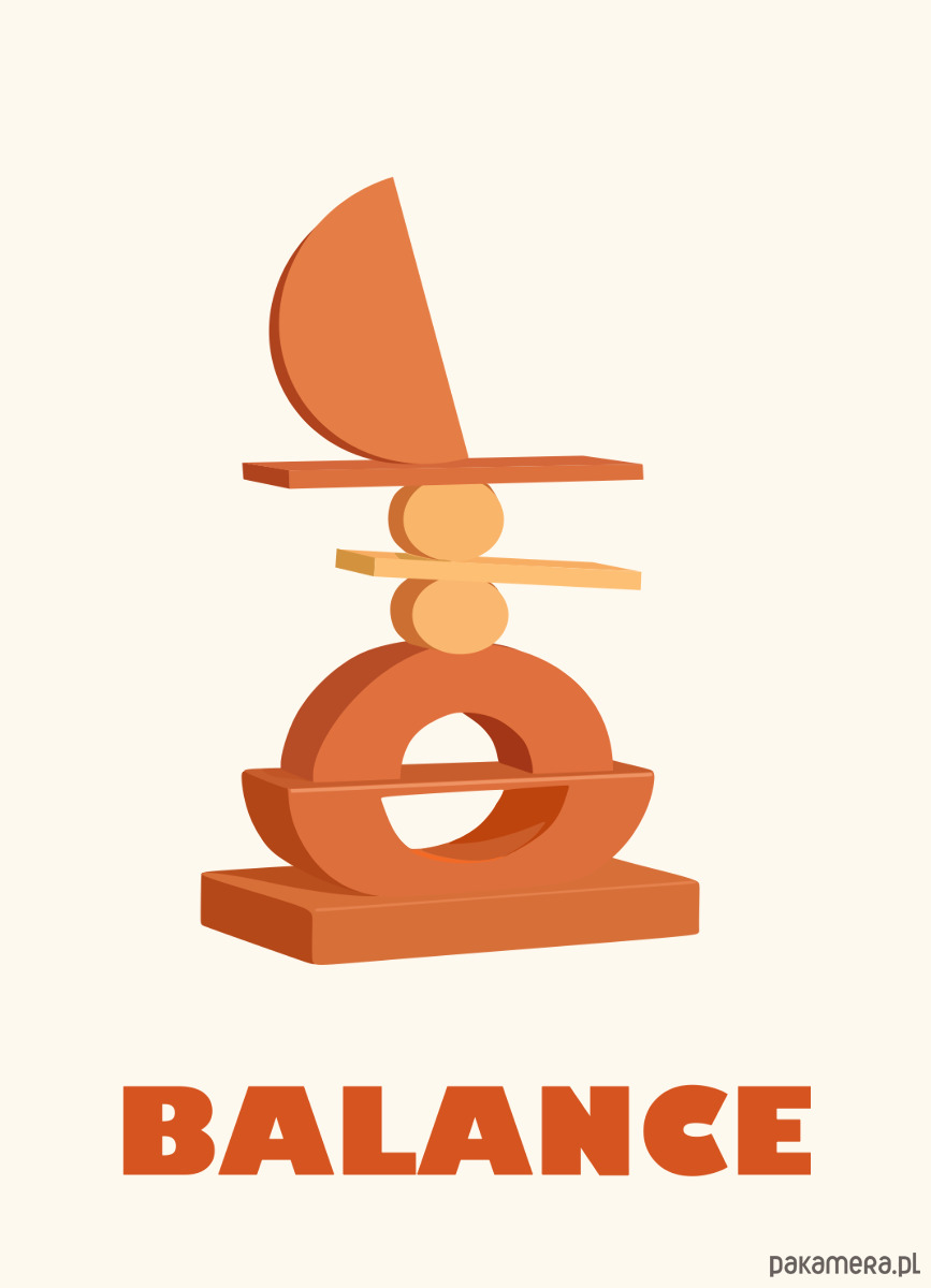 Twój spokój zaczyna się na ścianie. Minimalistyczna kompozycja inspirowana ideą równowagi, gdzie forma i kolor tworzą harmonijną całość. Ciepłe odcienie pomarańczy przełamane zielenią nadają wnętrzu energii, jednocześnie zachowując spokój i lekkość. Plakat, który działa jak wizualny reset , idealny do nowoczesnych, świadomie zaprojektowanych przestrzeni.