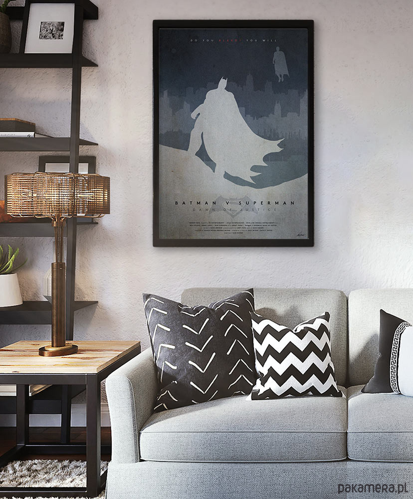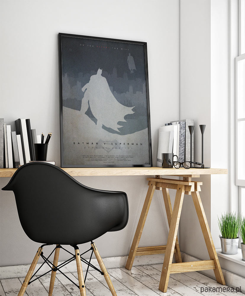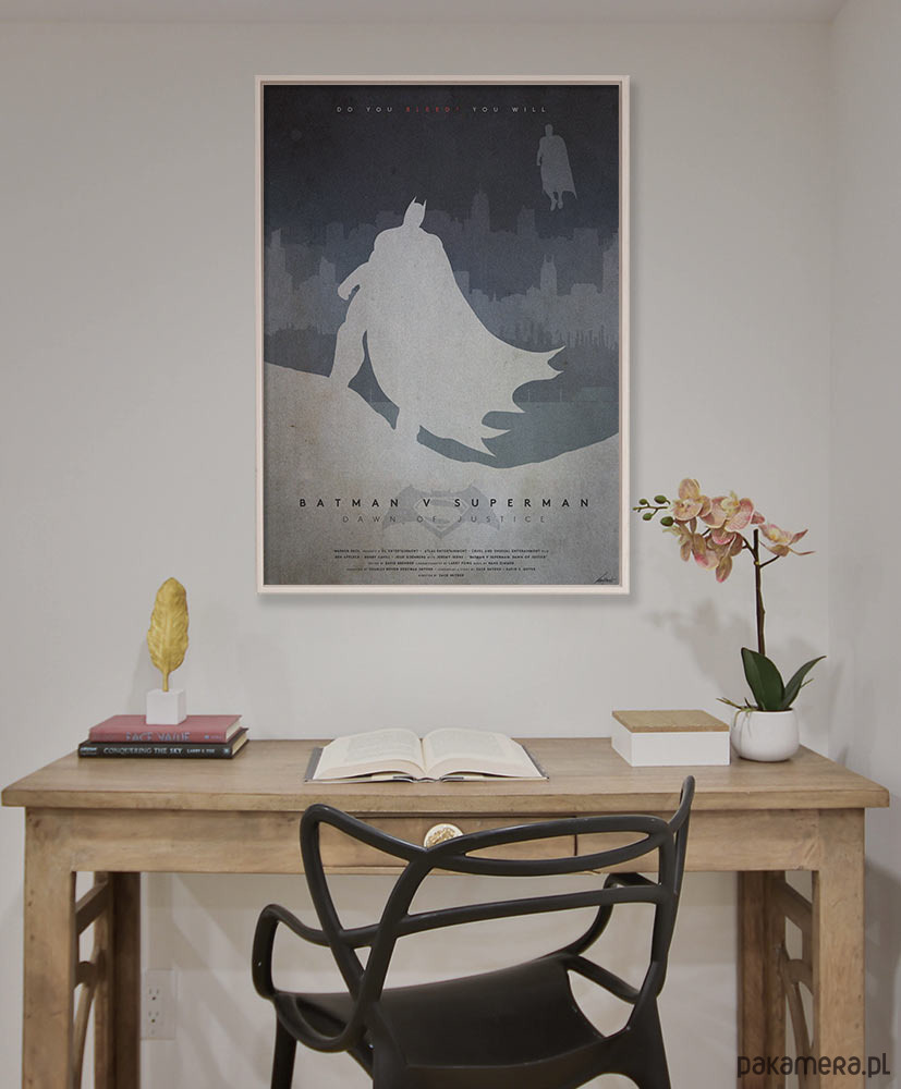 Plakat inspirowany filmem Batman kontra Superman: Świt sprawiedliwości (Batman v Superman: Dawn of Justice) w reżyserii Zacka Snydera. Idealna dekoracja dla wszystkich fanów postaci i opowieści z uniwersum komiksowego DC.