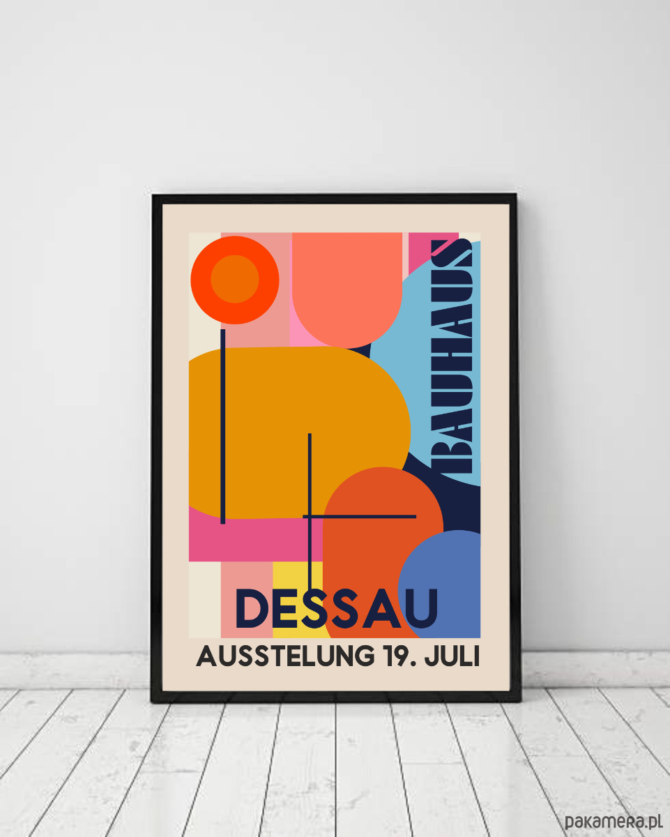 Bauhaus, graficzny plakat nawiązujący do ducha bauhausu. Tło plakatu jest kremowe na specjalne życzenie może być białe.