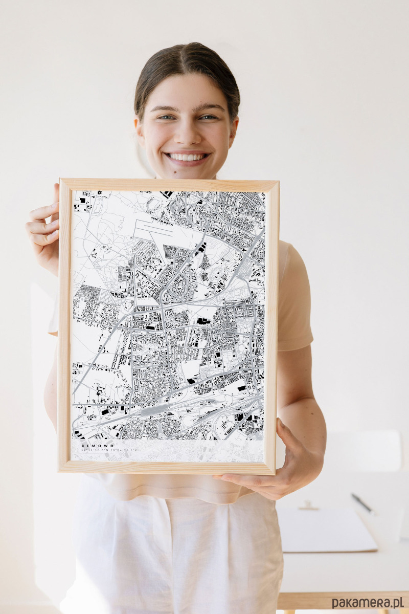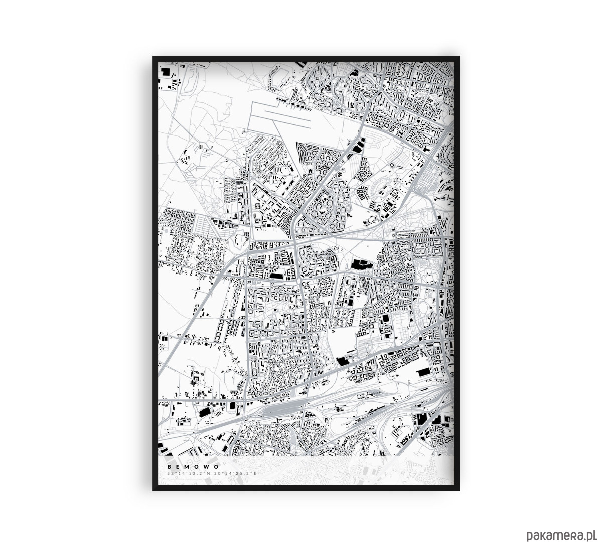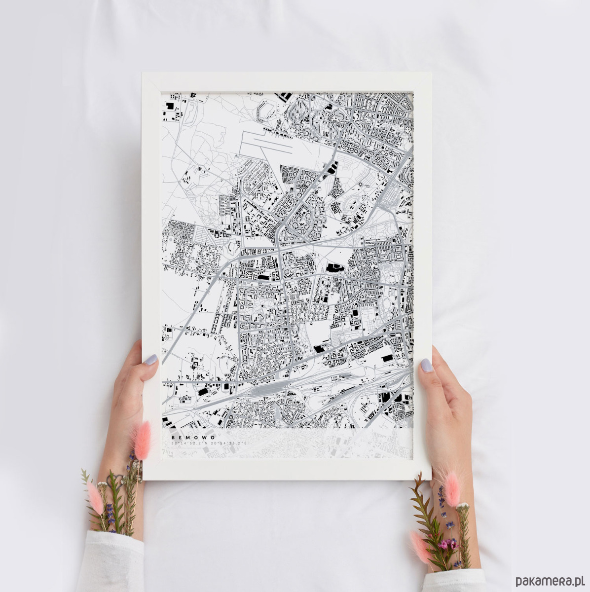 Plakat z mapą dzielnicy Bemowo w stylu urbanistycznym