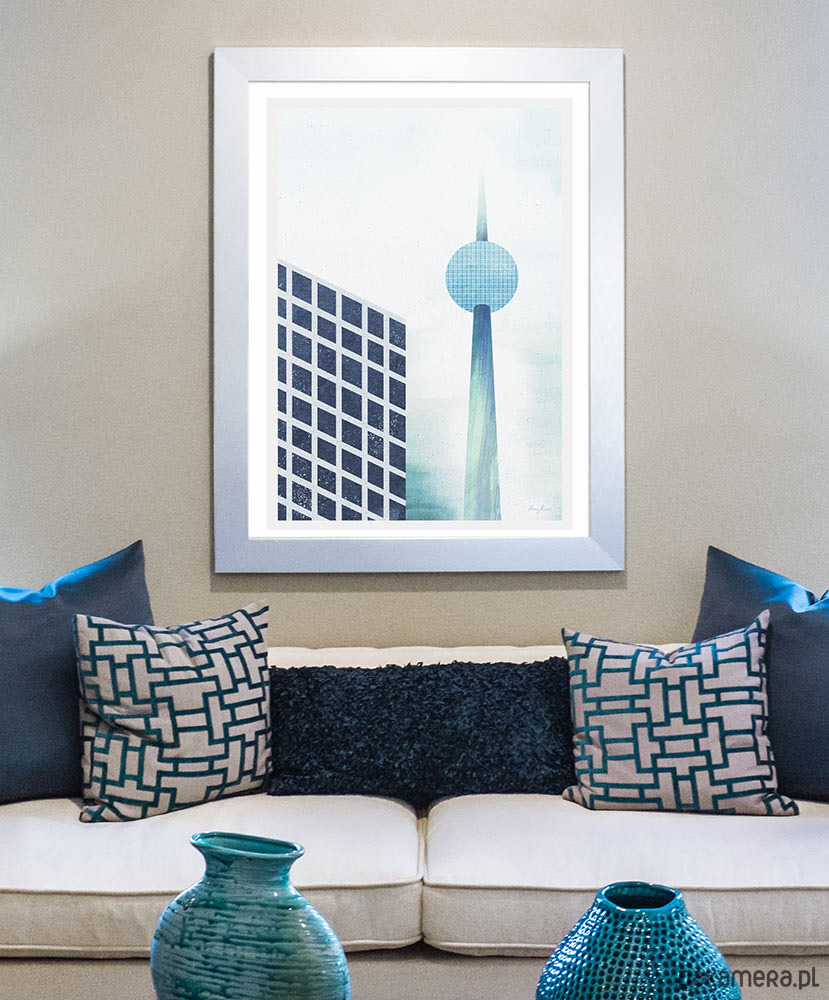 Plakat "Berlin - Alexanderplatz TV Tower" nawiązuje do charakterystycznego punku miasta. Słynna wieża telewizyjna jest dziś jednym z najważniejszych i najchętniej odwiedzanych zabytków miasta.