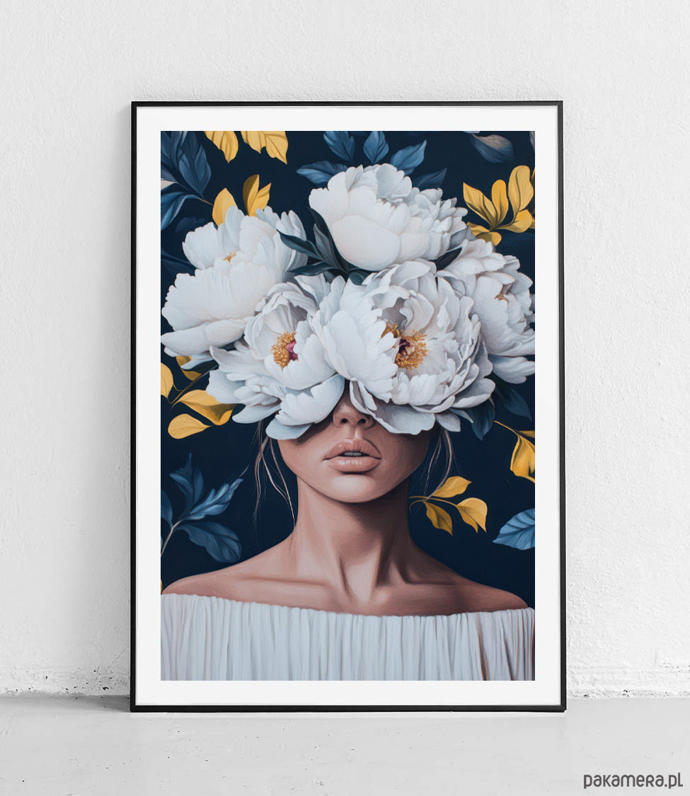 Plakat Białe kwiaty i granat