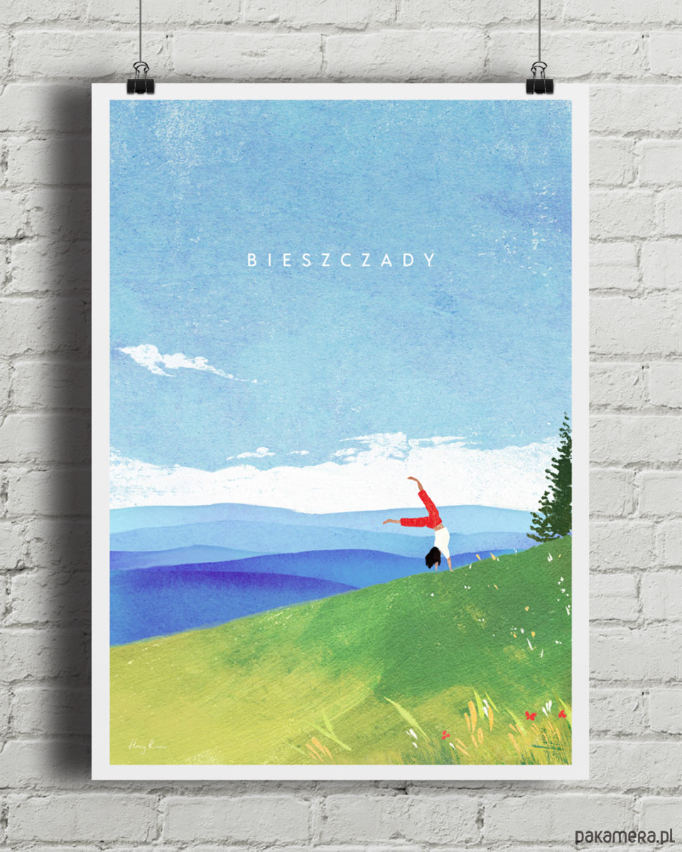 Plakat „Bieszczady - w górach z pozytywną energią” przypomnina o nieposkromionej radości z przebywania na słońcu i na świeżym powietrzu. Odwołuje się do czasów dzieciństwa, gdy na spacerze nie zdołało się powstrzymać przed niespodziewaną chęcią zrobienia gwiazdy, bądź radosnych podskoków. Grafika z Bieszczadami świetnie sprawdzi się jako radosna dekoracja domu - solo, bądź w zestawie z innymi plakatami górskimi.