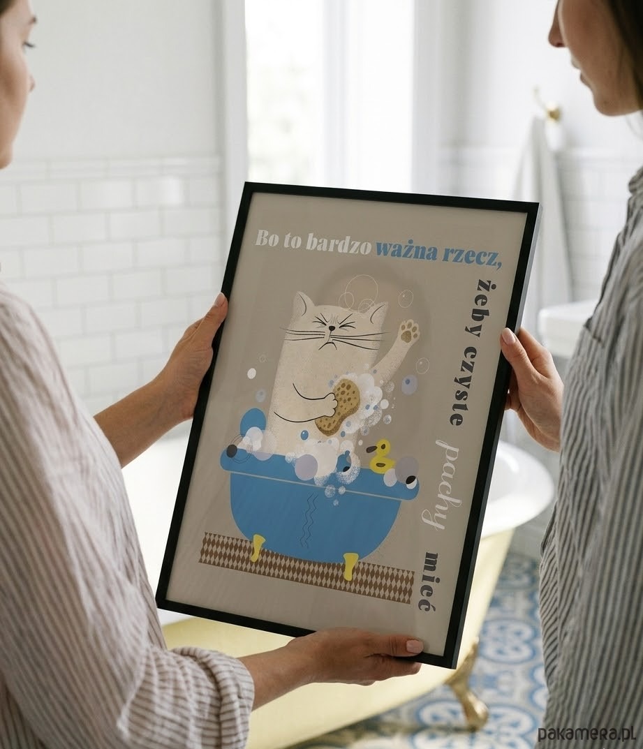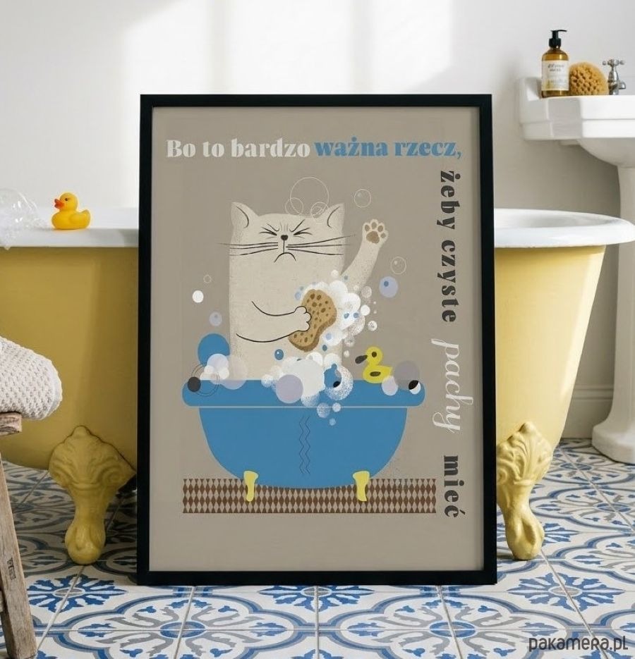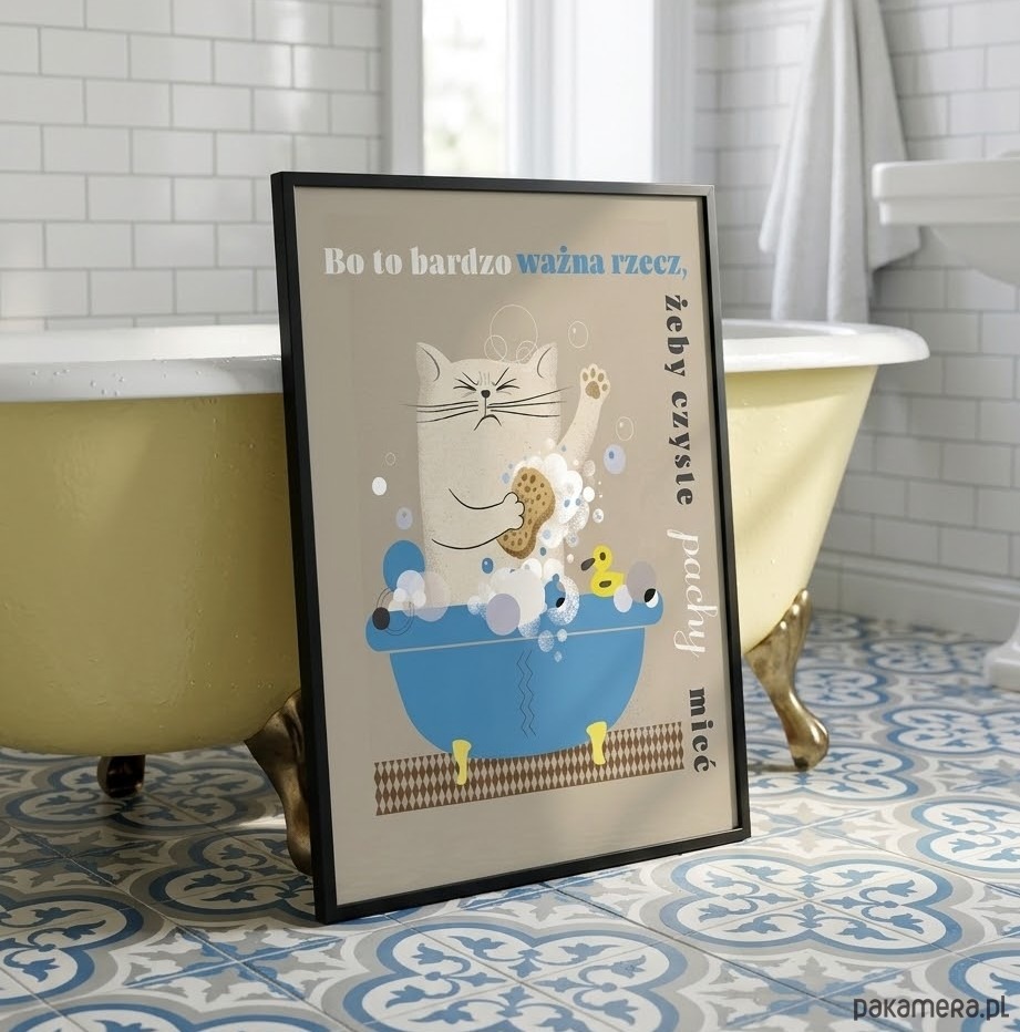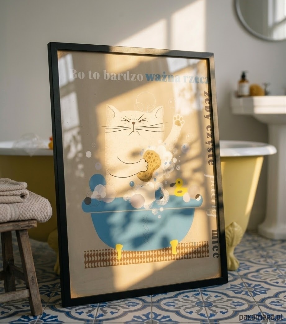 Plakat RETRO do Łazienki – Zabawny KOT w Wannie | Vintage, retro