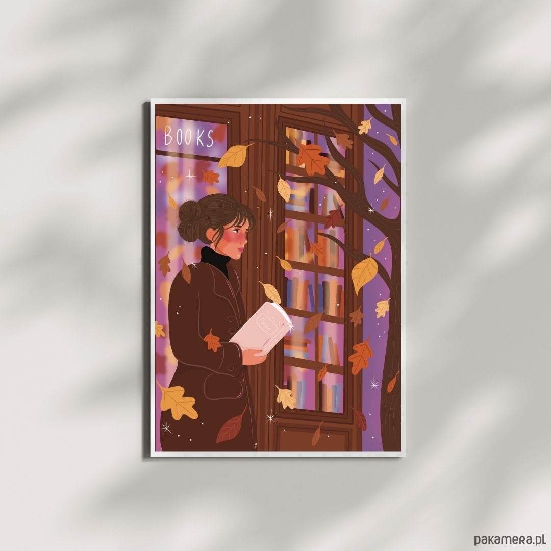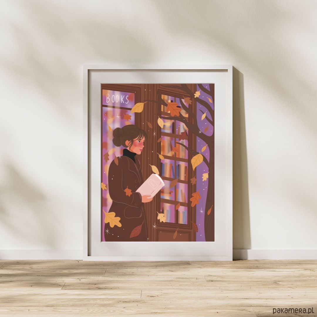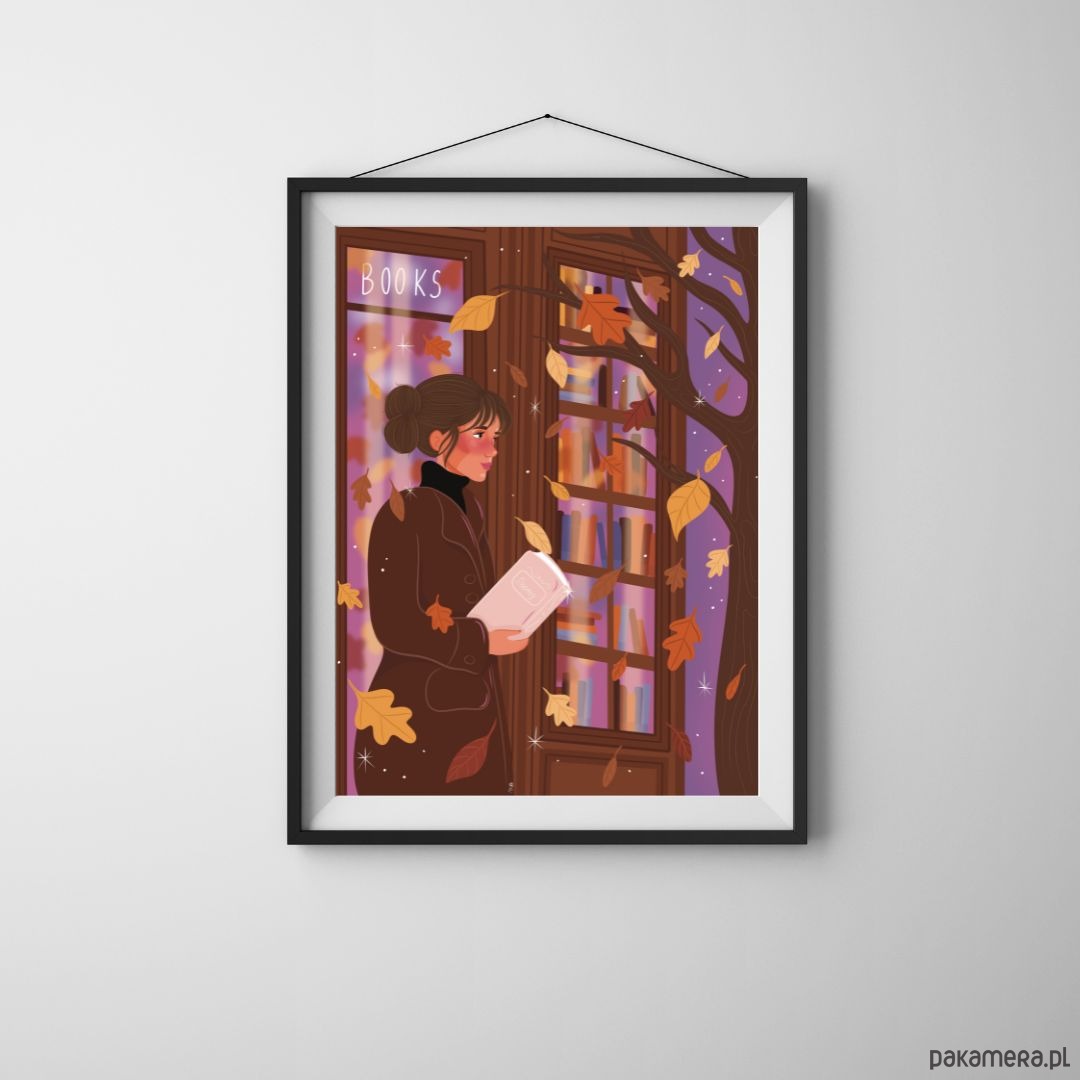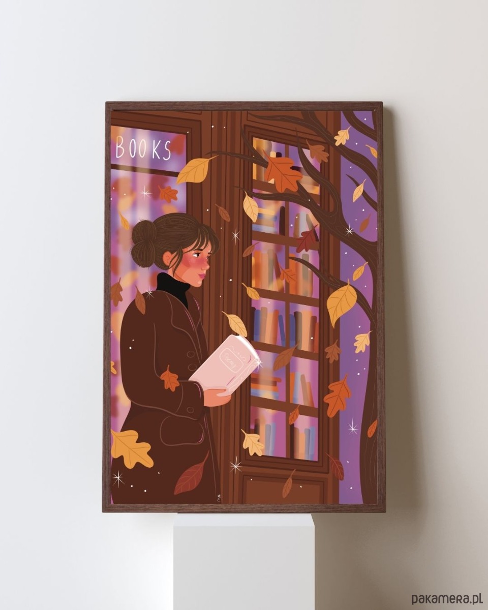 Autorska ilustracja pt. "Bookstore". Idealna jako ozdoba na nadchodzącą jesień! Zapraszam do zakupu!