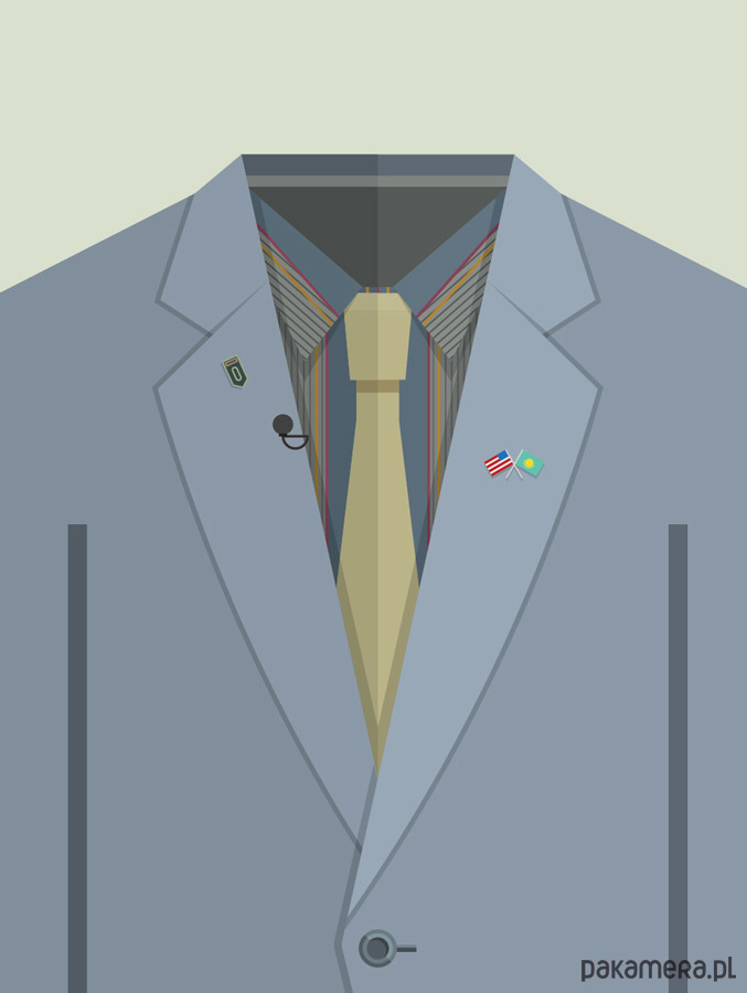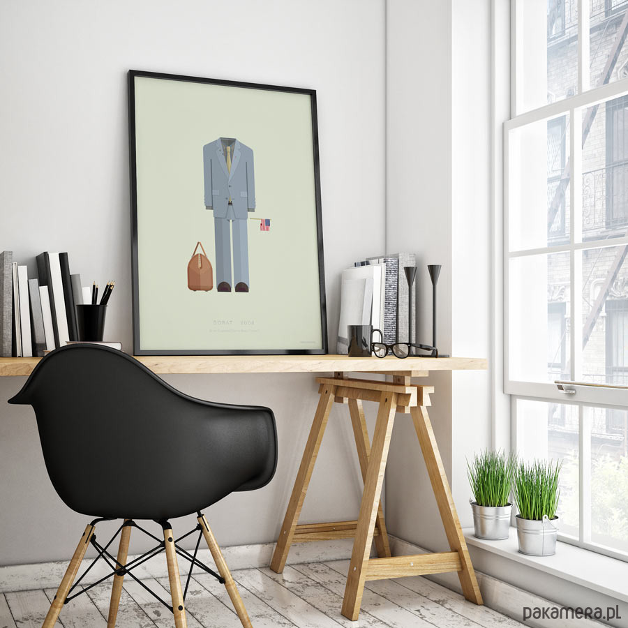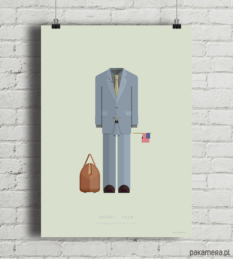 Plakat z autorską grafiką inspirowaną filmem "Borat", reż. Larry Charles. Pochodzi z serii "Cinema Costumes" (Kostiumy kinowe) i przedstawia strój tytułowego bohatera.