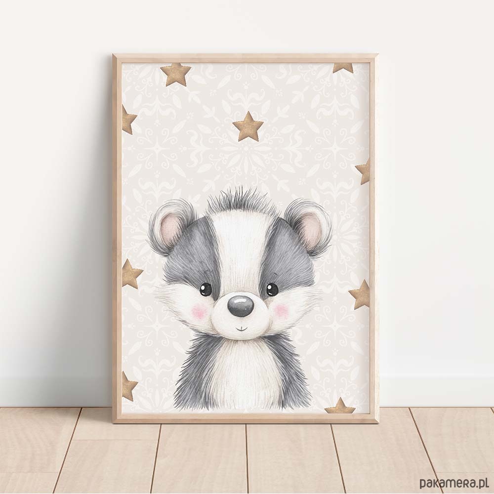 Plakat do pokoju dziecięcego „Borsuk i gwiazdki” – beżowy