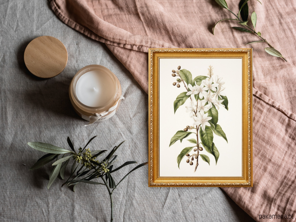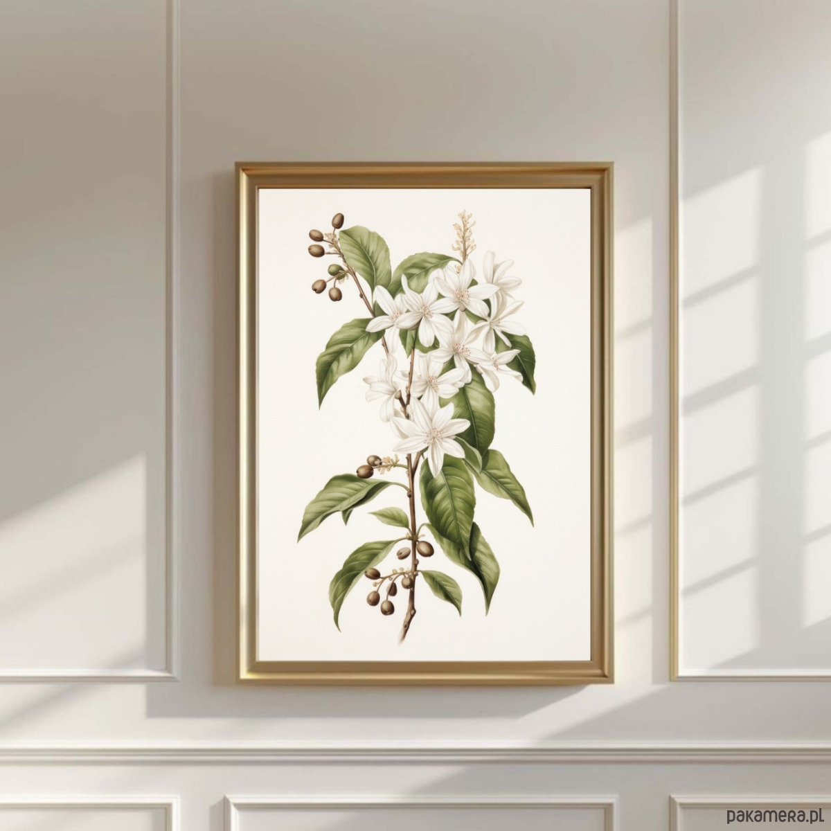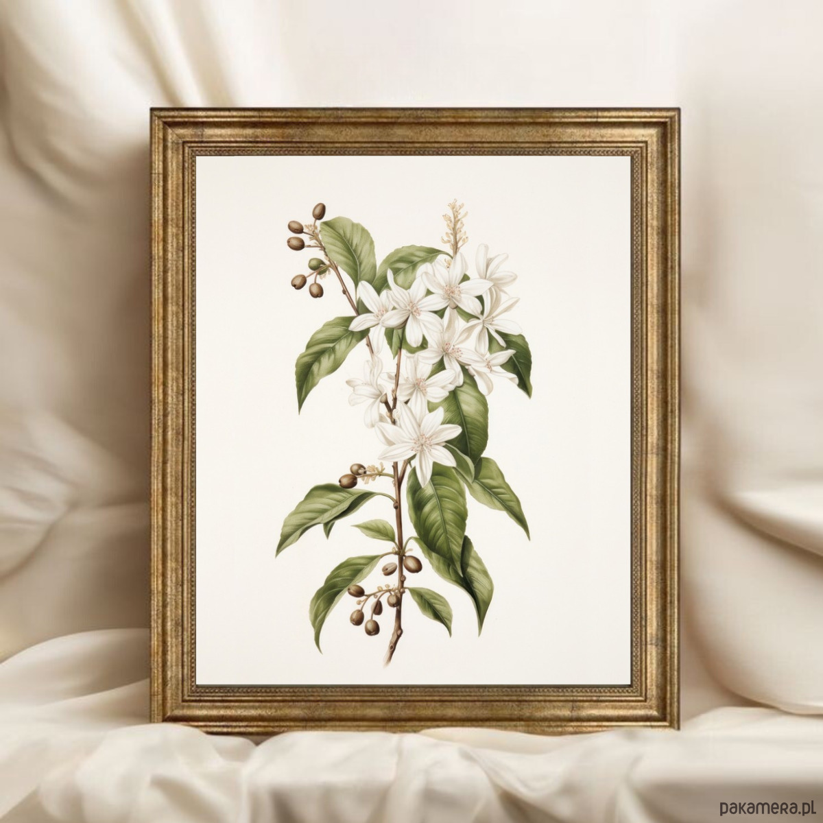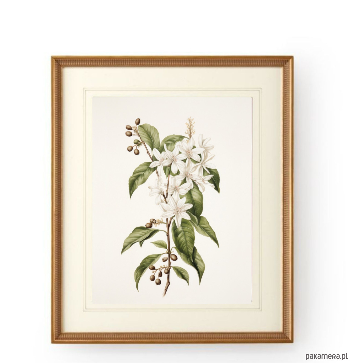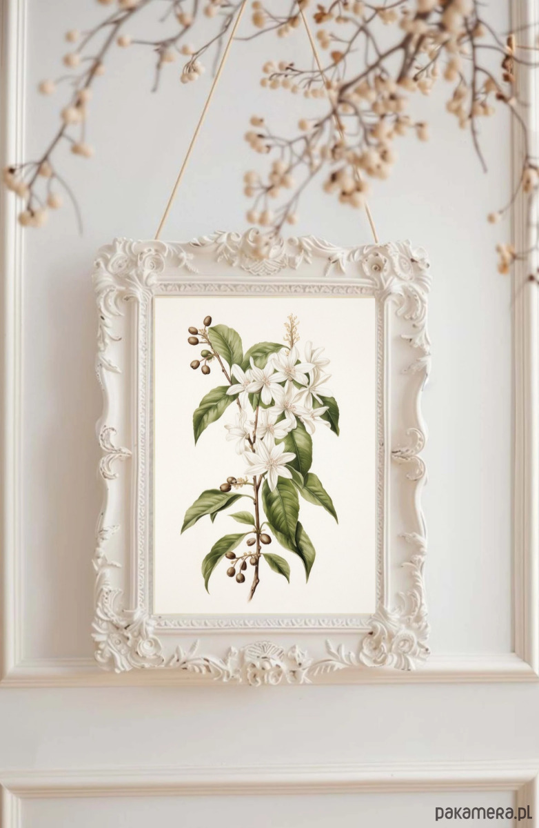 PLAKAT botaniczny, białe kwiaty grafika, rysunek kwiaty