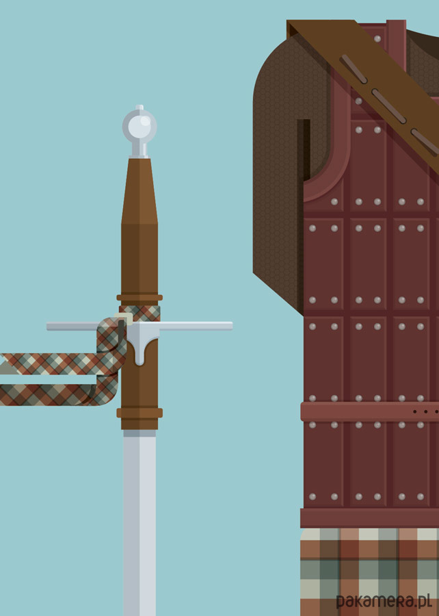 Plakat z autorską grafiką inspirowaną filmem Braveheart - Waleczne Serce (Braveheart), reż. Mel Gibson. Pochodzi z serii "Cinema Costumes" (Kostiumy kinowe) i przedstawia tradycyjny szkocki strój Williama Wallace'a.