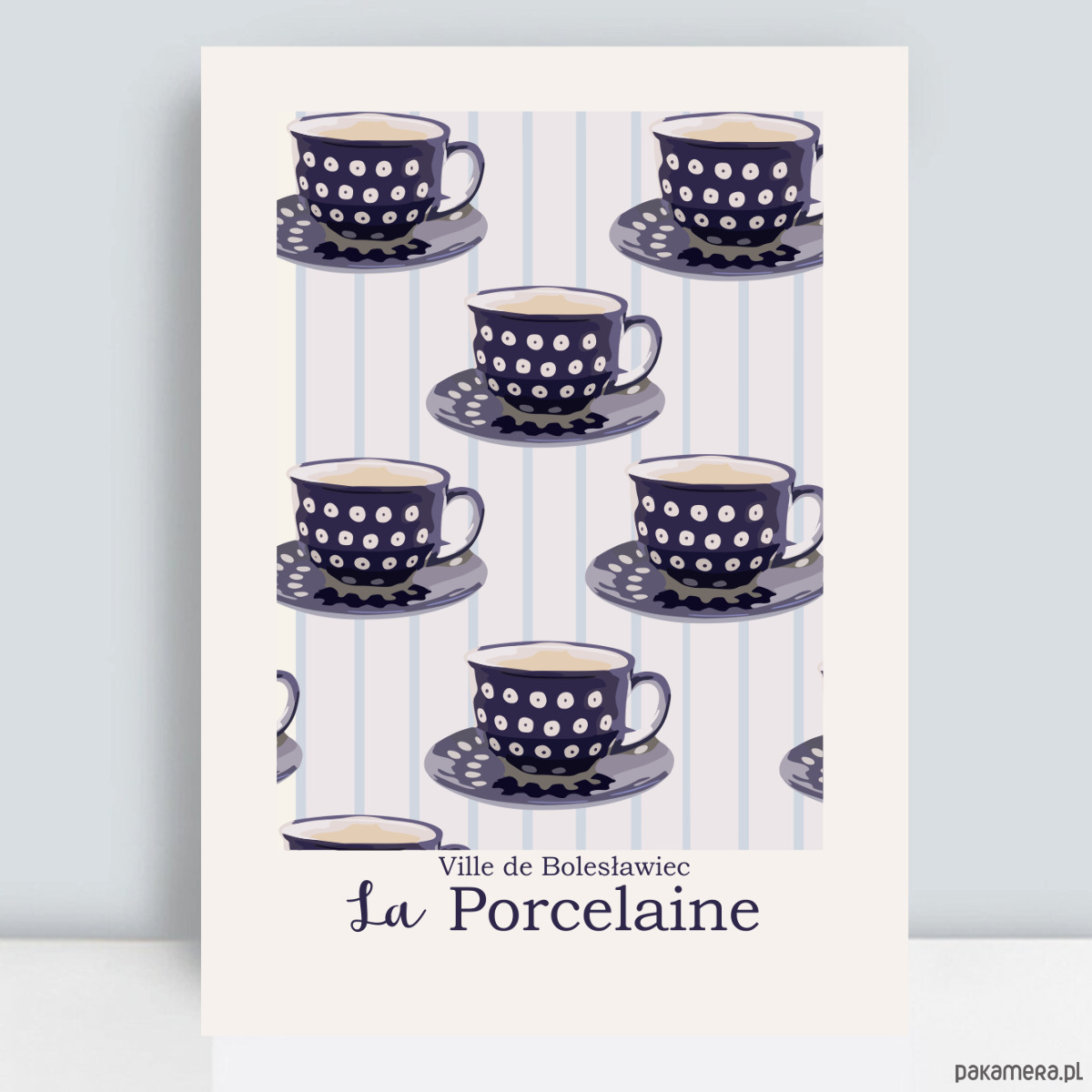 Ceramika Bolesławiec. Tło plakatu ma kolor złamanej bieli .