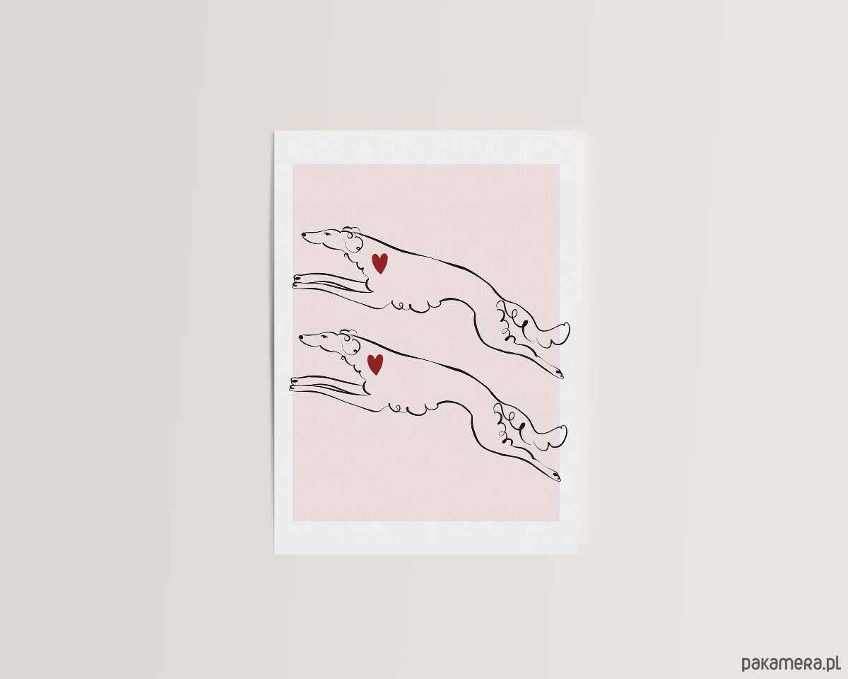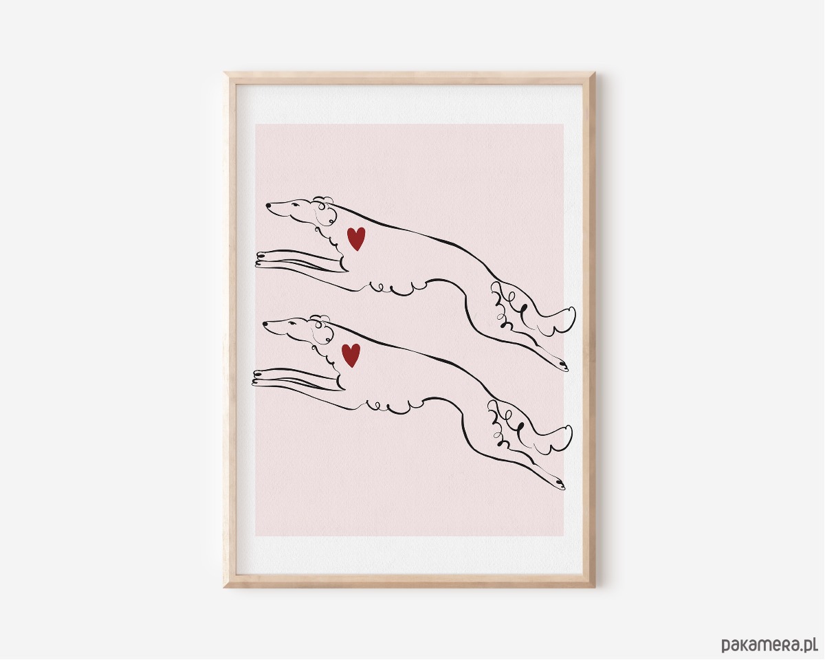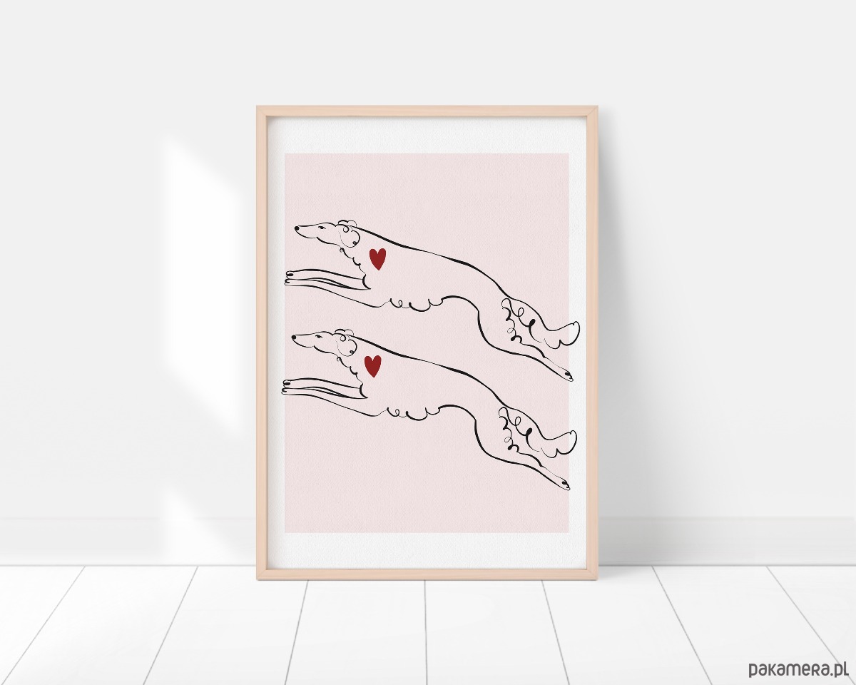 Grafika przedstawiająca biegnące charciki będzie idealnym uzupełnieniem wnętrz.