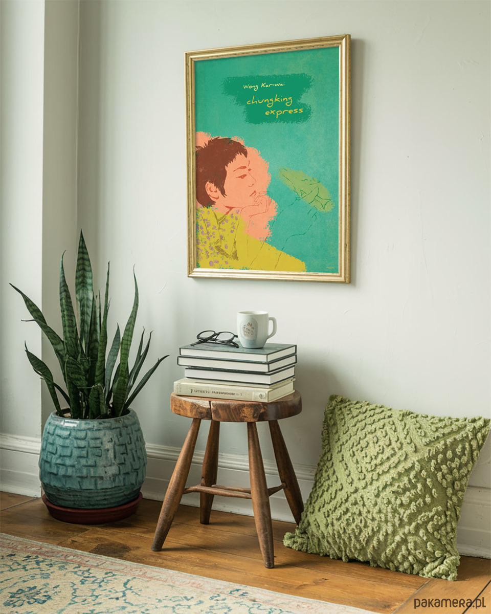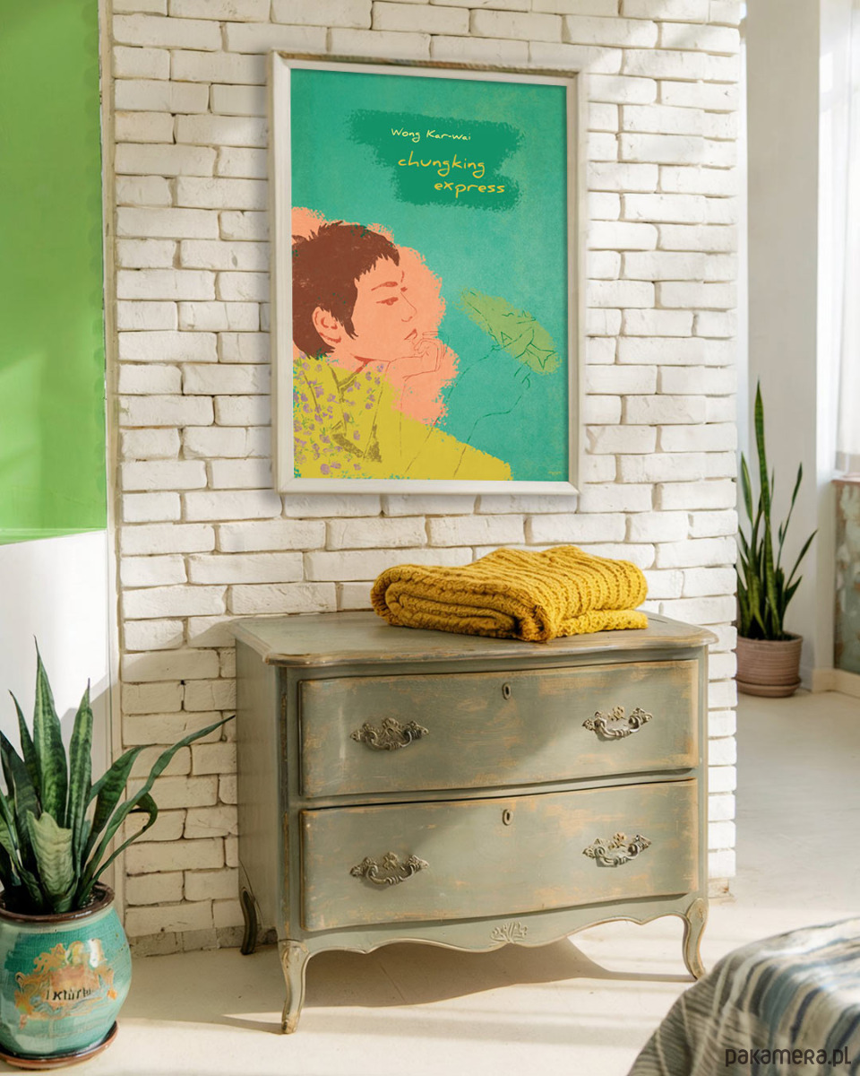 Plakat inspirowany filmem "Chungking Expressw" reżyserii Wong Kar-Waia. Neonowy Hong Kong pełen nieszablonowych postaci, genialne zdjęcia i narracja, która trwale wpłynęła na pojmowanie artystycznego kina lat 90-tych. Plakat w szkicowej formie przedstawia jedną z głównych bohaterek, w którą wcieliła się urocza Faye Wong. Grafika utrzymana w ciepłych, intensywnych barwach stanowić będzie piękny, dekoracyjny akcent na ścianach mieszkania.