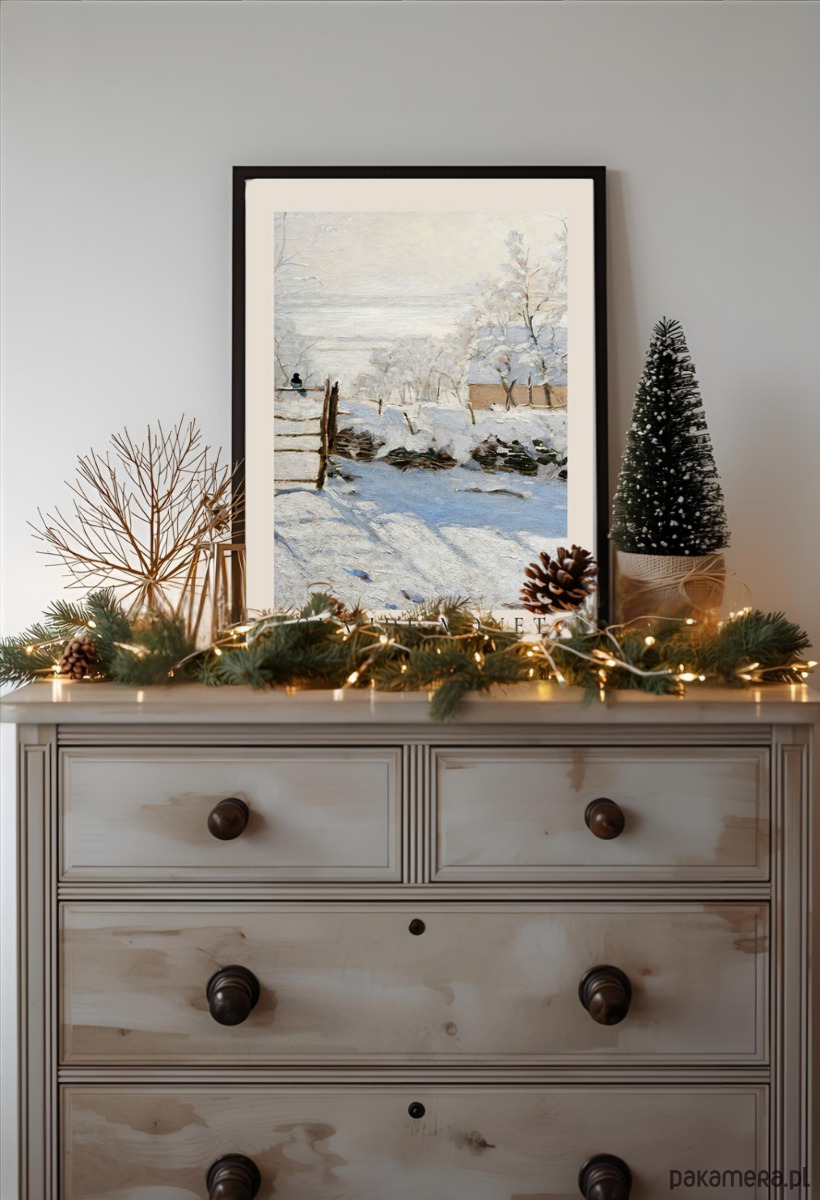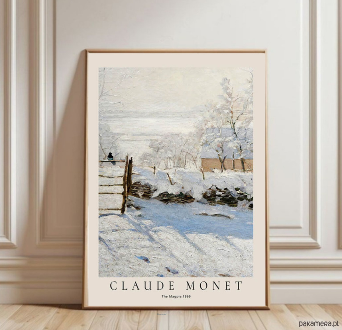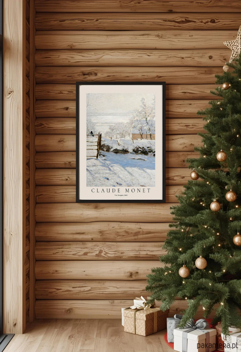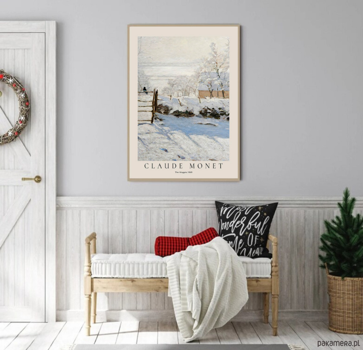 PLAKAT Claude Monet, zimowy pejzaż, wiejski krajobraz