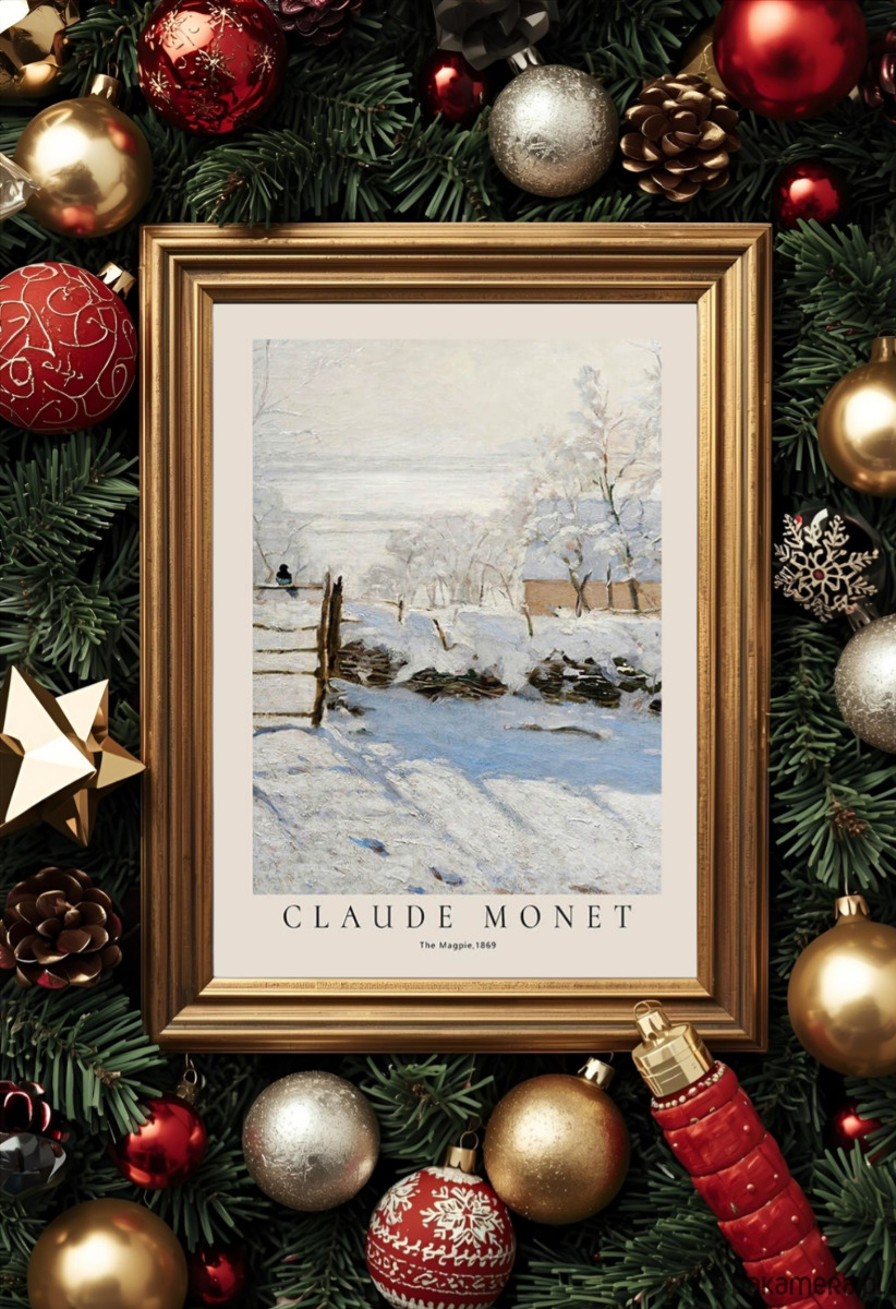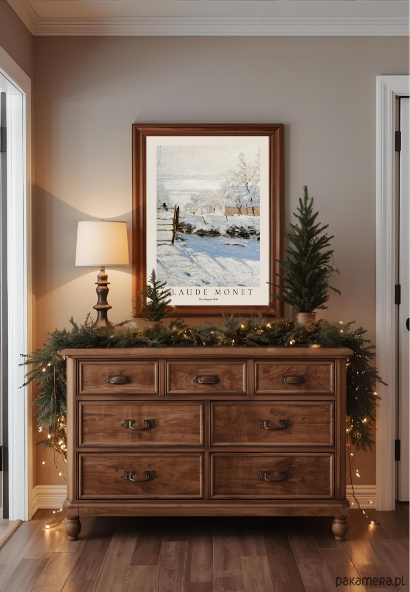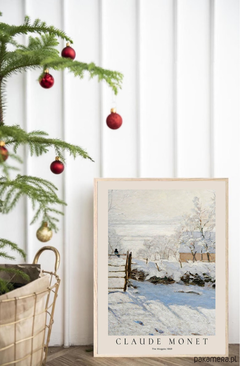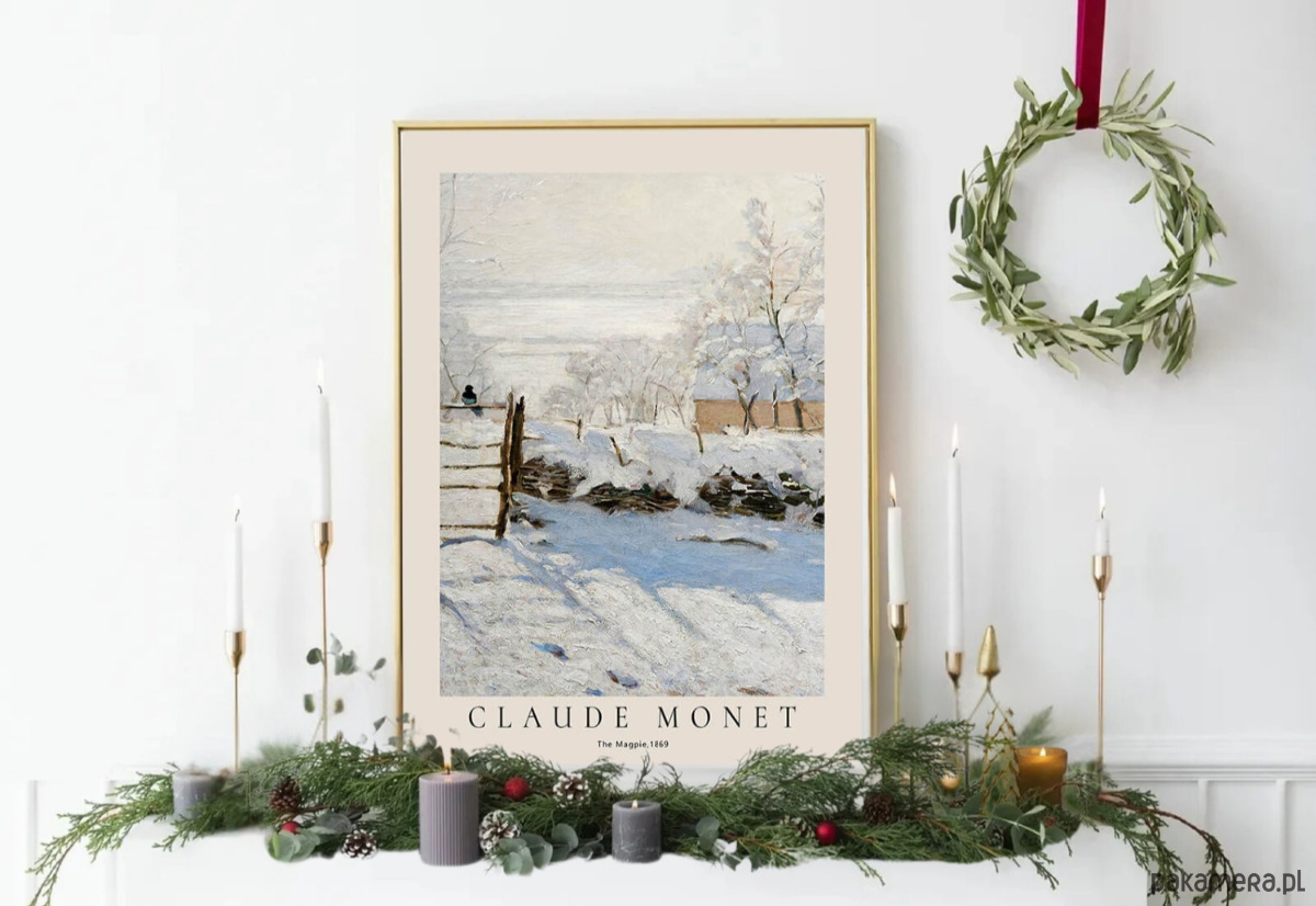 PLAKAT Claude Monet, zimowy pejzaż, wiejski krajobraz
