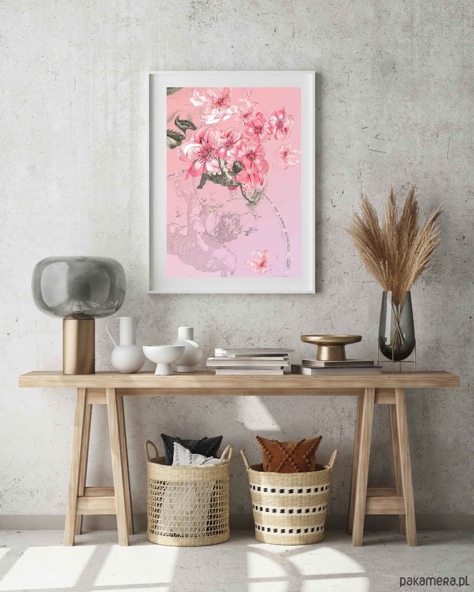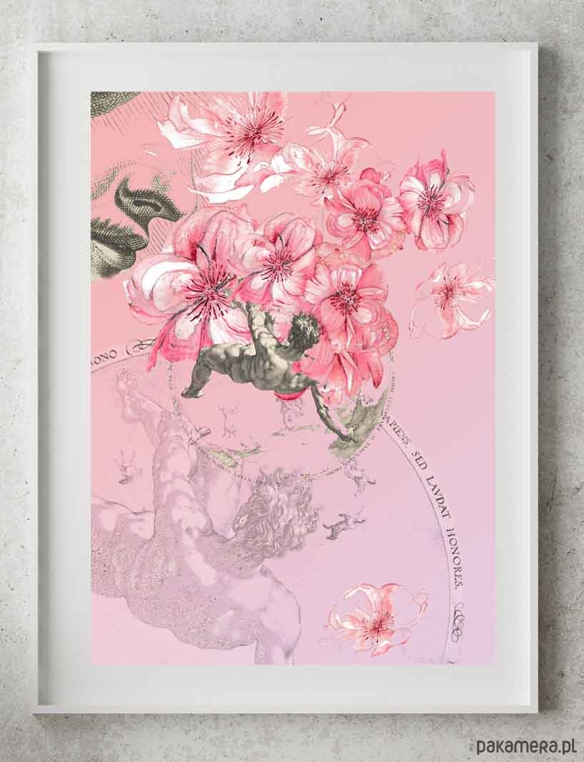 Plakat Collage Upadam w toń łapiąc za płatki piwonii róż